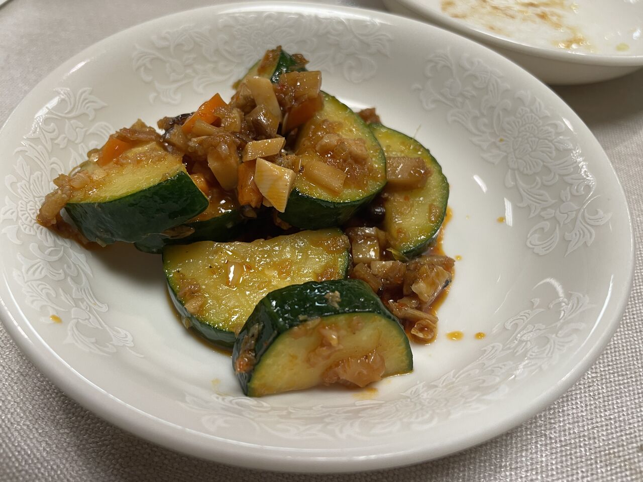 このズッキーニの生姜炒め、みたいなやつは、不評でした。