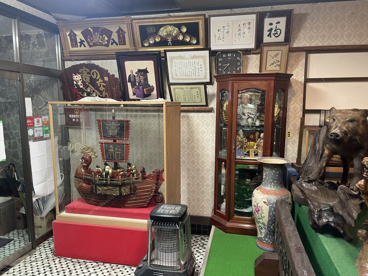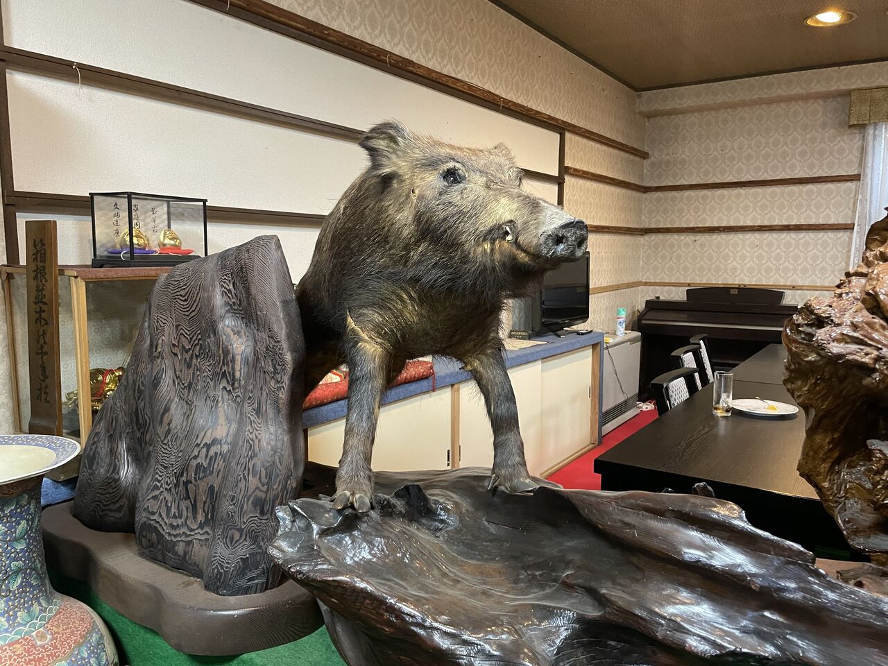 オリオン食堂さんの1階には、猪や熊の剥製など色んな物が展示されてます。