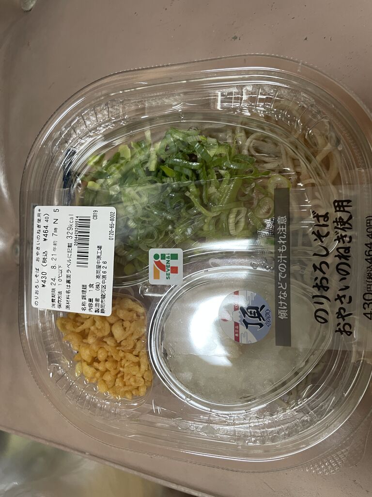 ある日の昼食は「のりおろしそば」おやさいのねぎ使用。