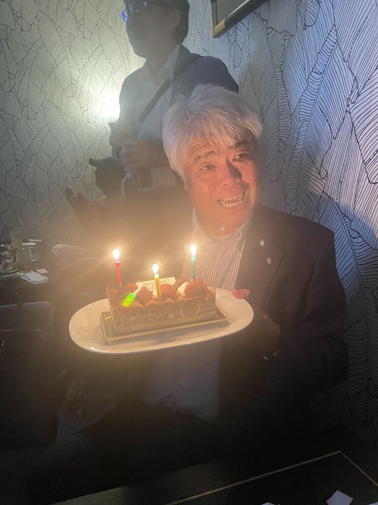 鎌野前会長の誕生日ということで、お店がケーキを差し入れてくれました。
