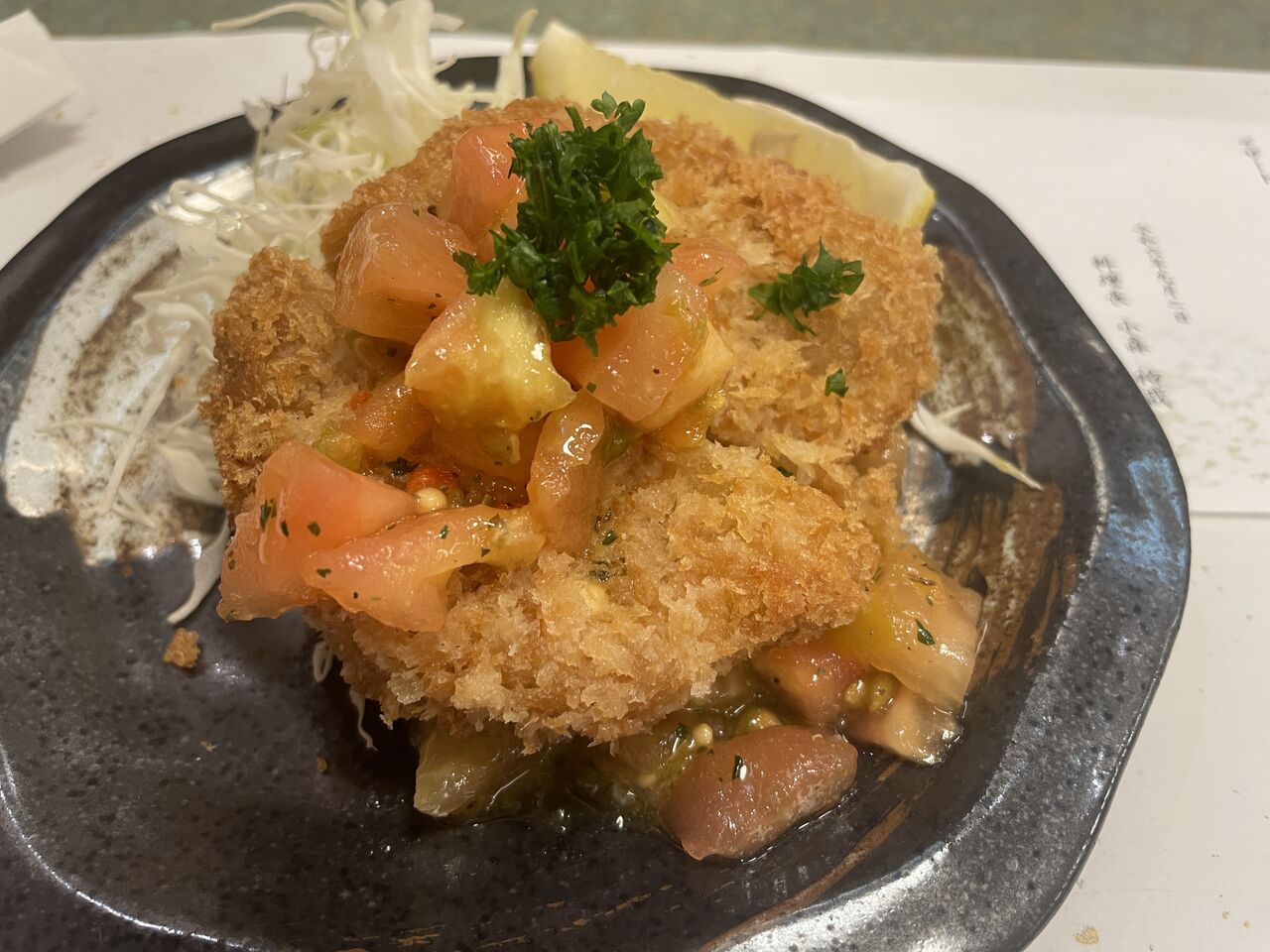 あじ豚ロースとポーク。ポークヒレカツ バジルトマトソース。