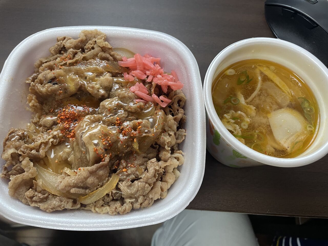 この日は休日、沼津方面に行った帰りに、裾野の「すき屋」で牛丼等を家族の分も買って帰りました。
