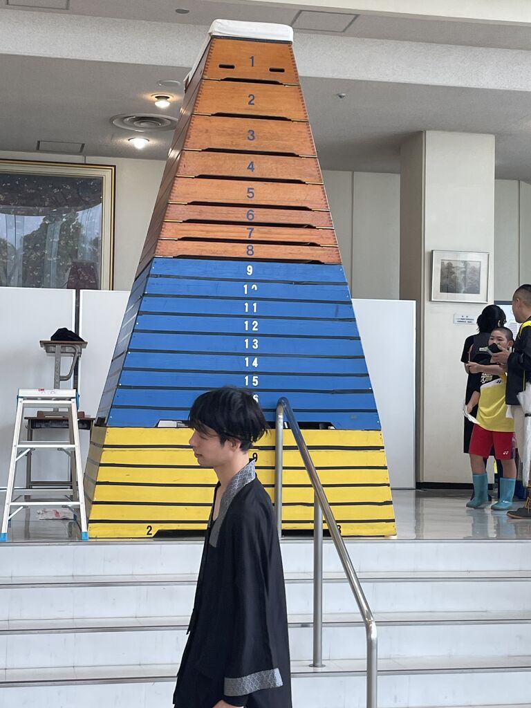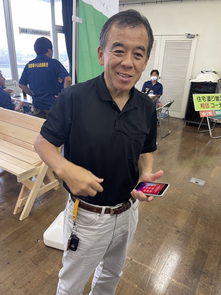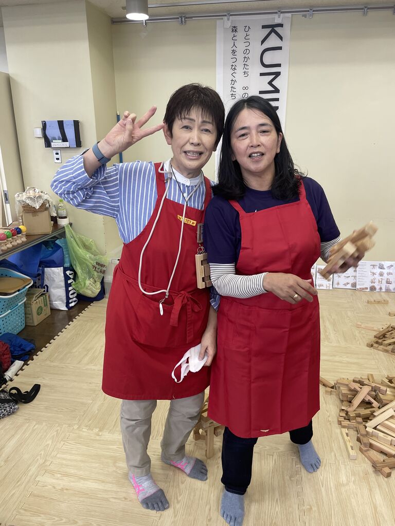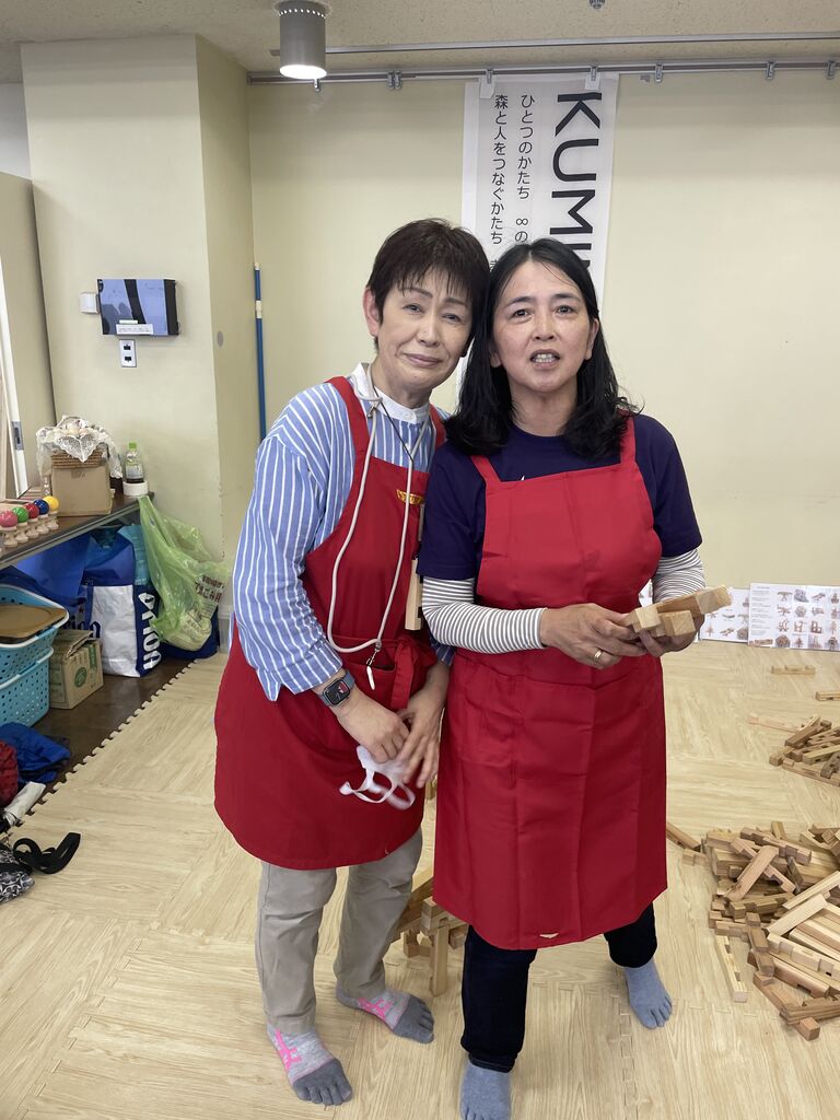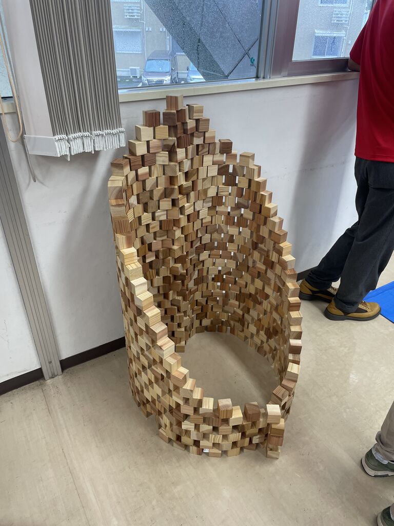 こちらは、商工会建設部会。積み木タワーチャレンジ。市長と副市長がチャレンジ中。