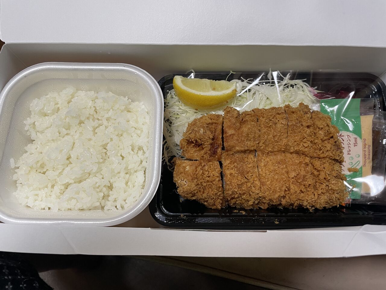 お昼は、「かつ榮」さんのヒレカツ弁当を木材協同組み合でいただきました。まいうー!