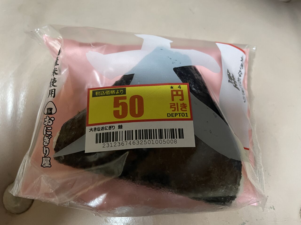 大きなお握り鮭、50円引きに吊られた。