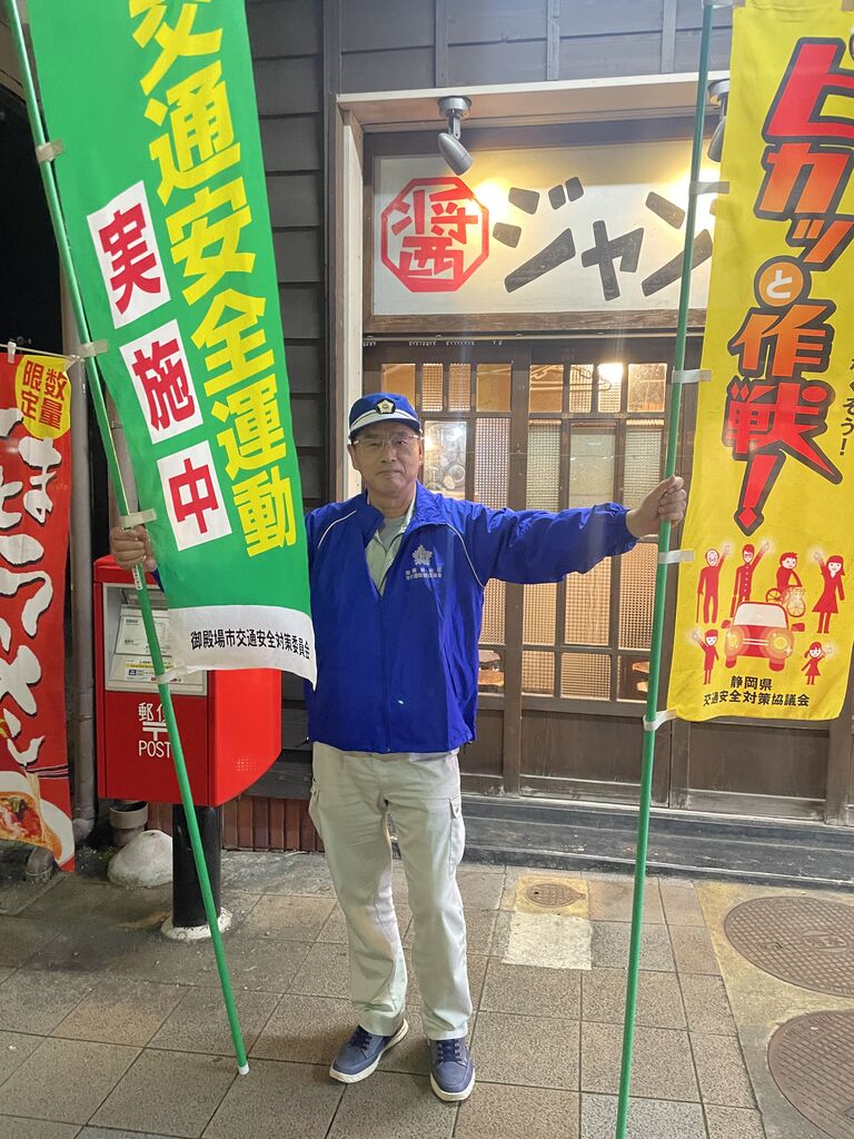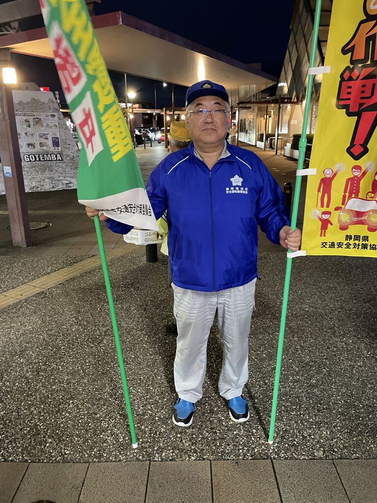 この日は、安全運転管理協会で交通安全運動の啓蒙活動へ出役です。