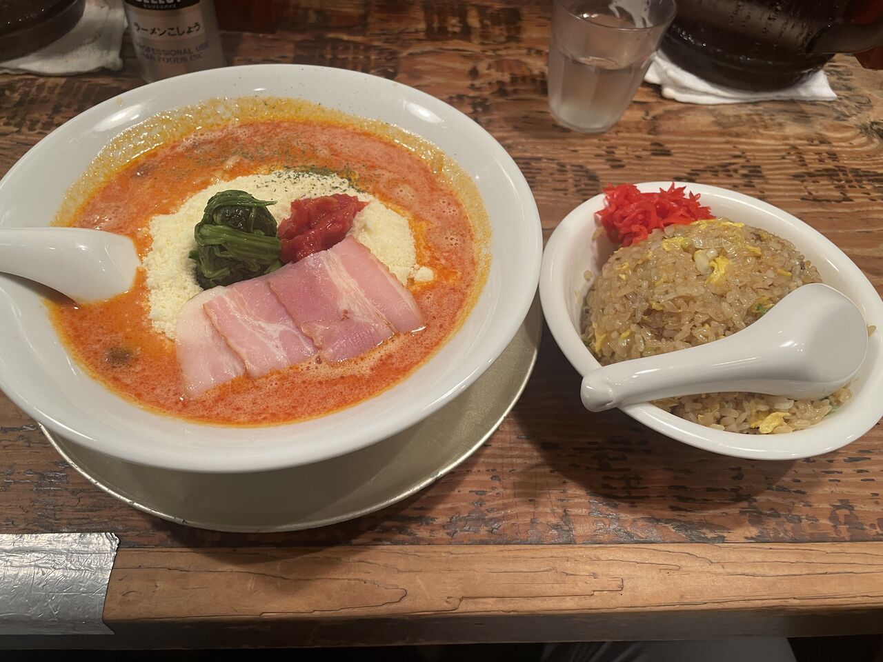せっかく駅前に行ったので「ジャンジャン軒」でトマトラーメンチーズダブルとチャーハン食べてきました。