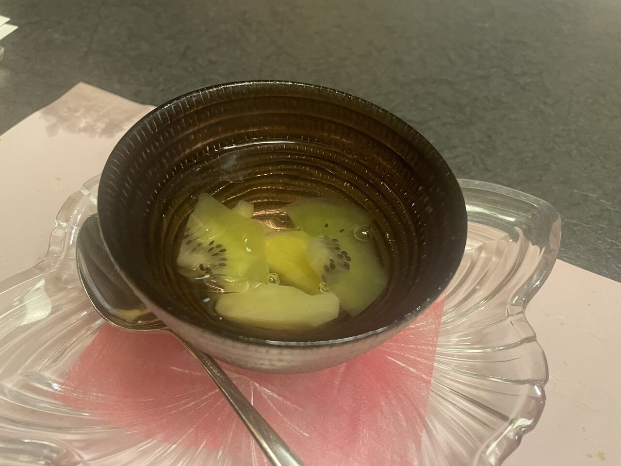 お寿司。 デザートは、キウイのゼリー。