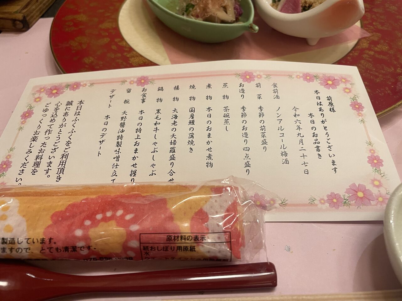 踊る友紀ちゃん。本日のお品書き。