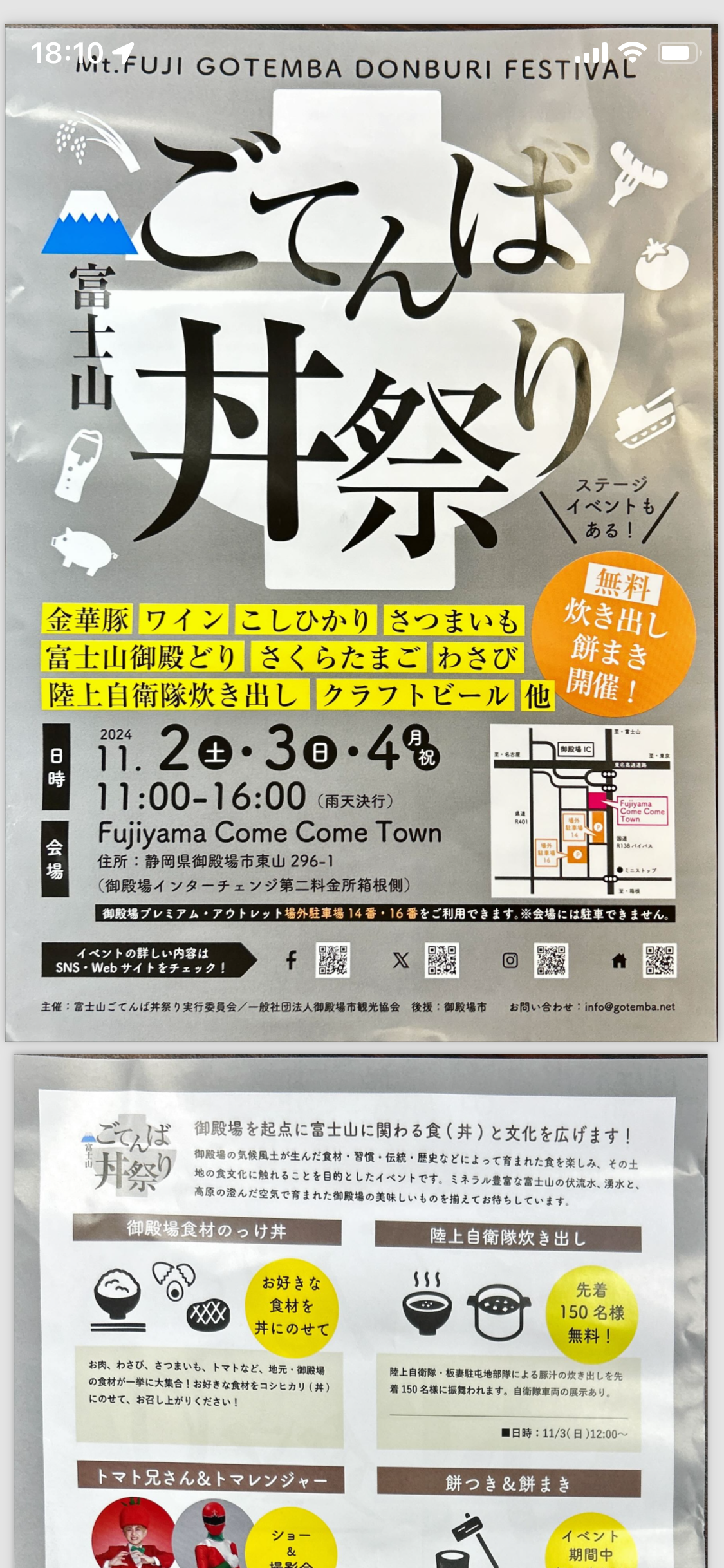 もう過ぎてしまったけど、色んなイベントが開催されています御殿場。