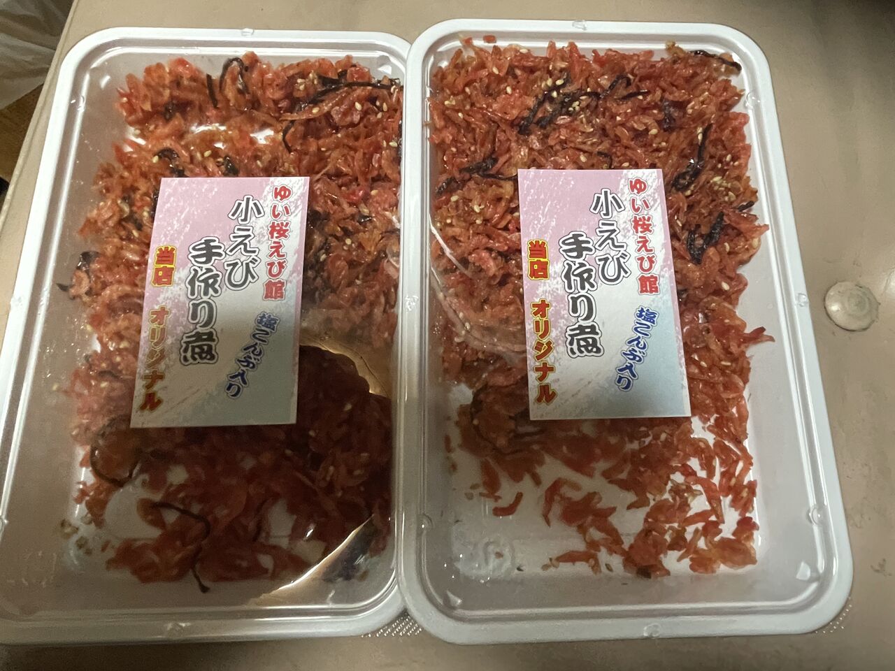 桜海老小えび手作り煮と、静岡限定 源氏パイ ピアノブラウン。
