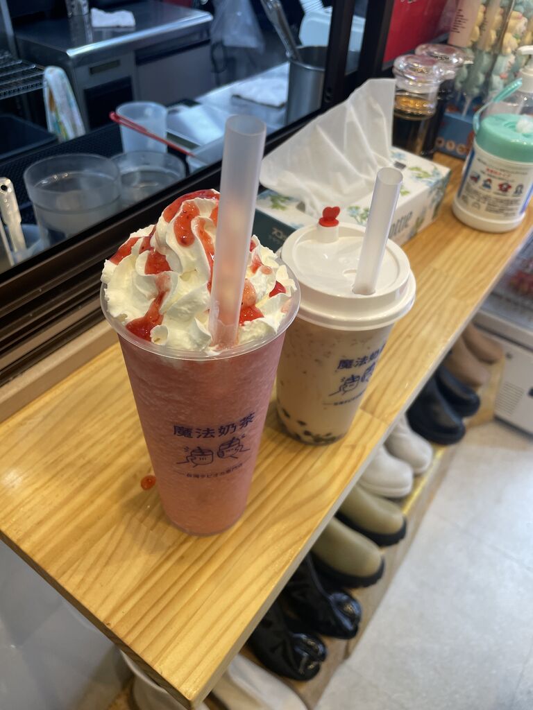 関帝廟。苺フラッペとタピオカミルクティー。