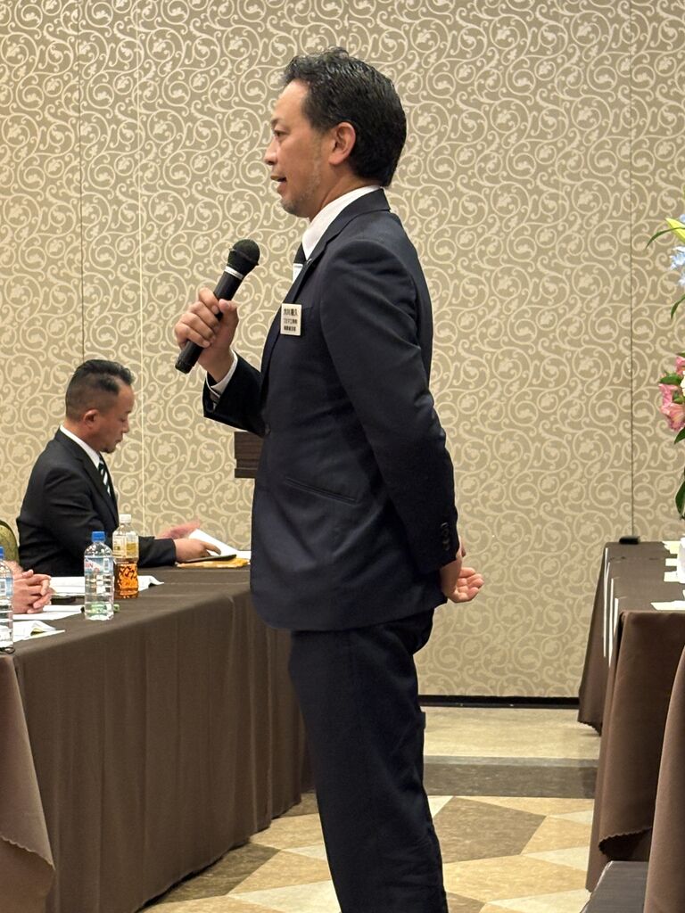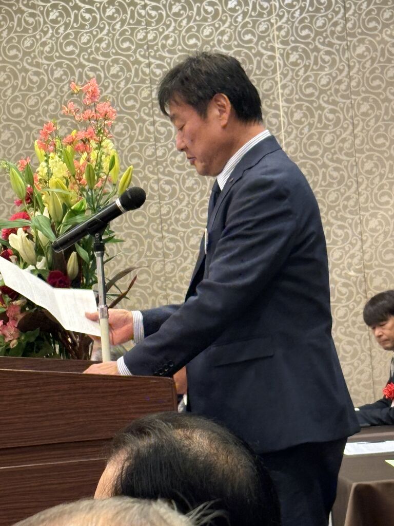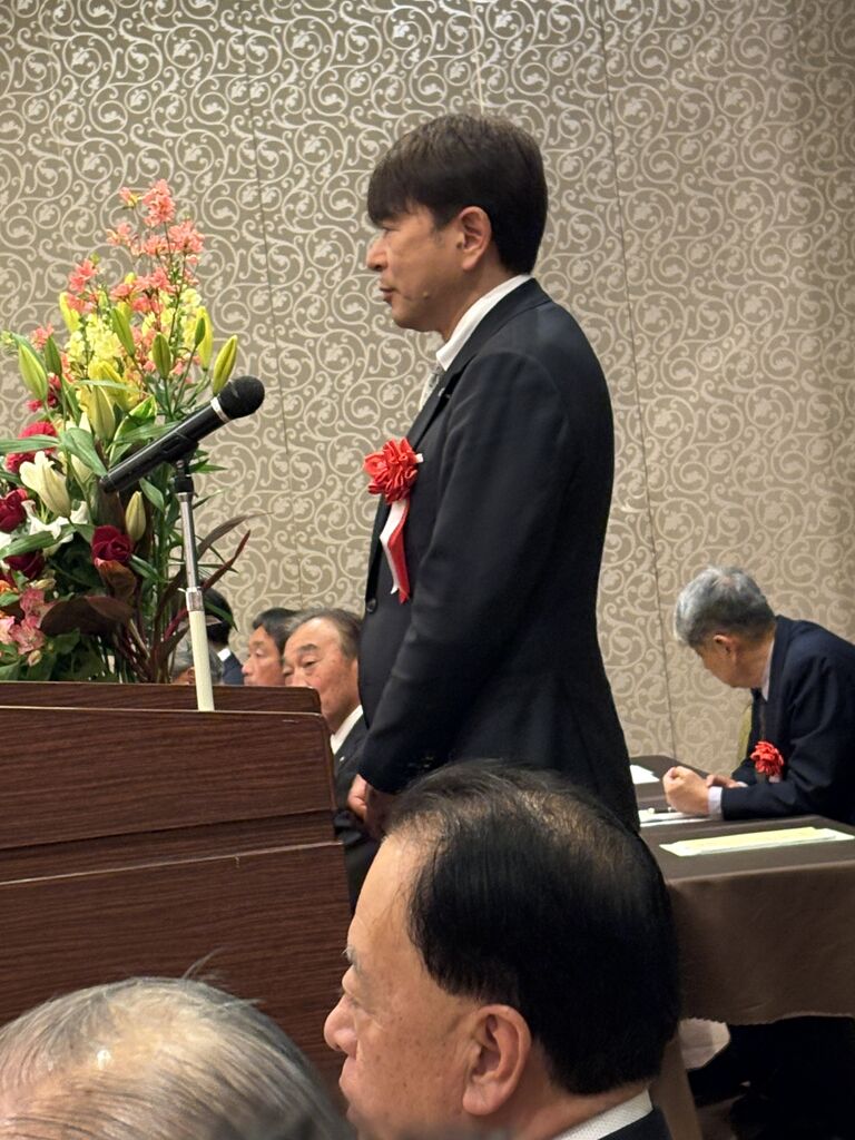 蓑同友会県代表理事挨拶。デカい益山くん。
