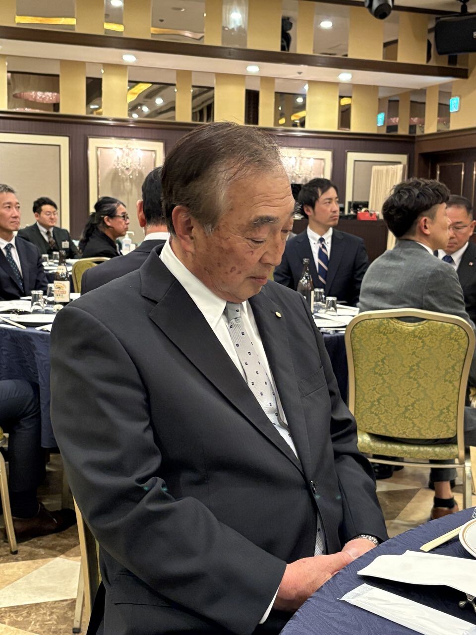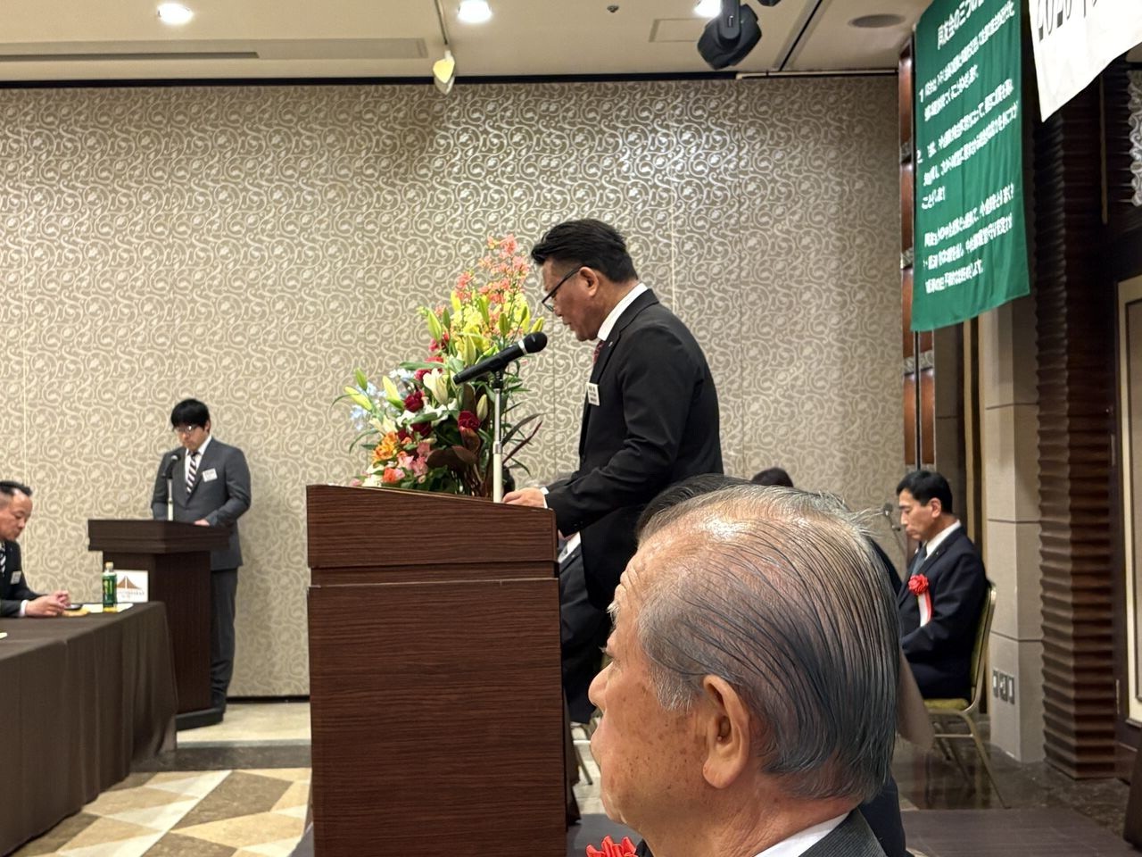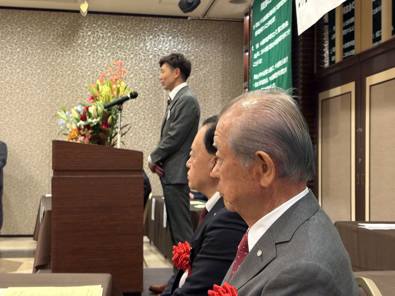 私、同友会の会員ですが、この日は商工会副会長として来賓席に座ってます。