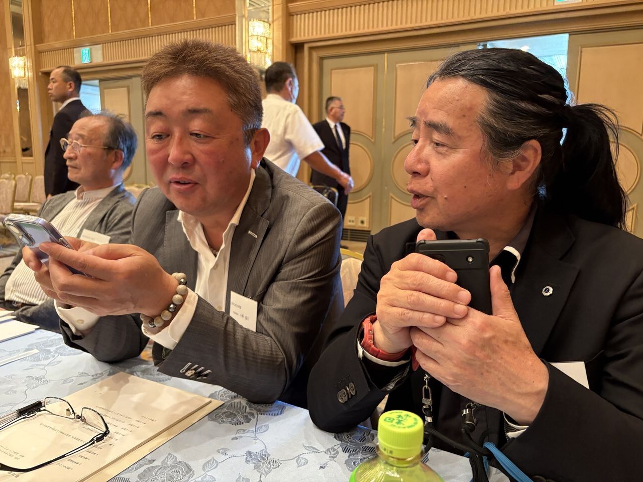 坪口社長と庄司社長。むこうの方に、雅心苑の土居社長発見!