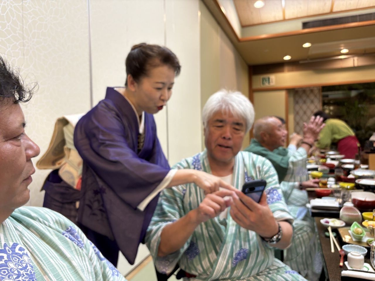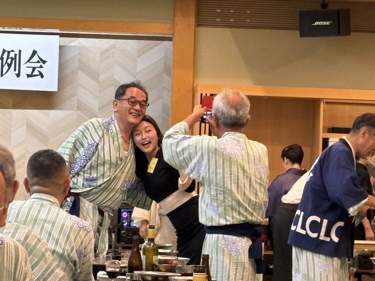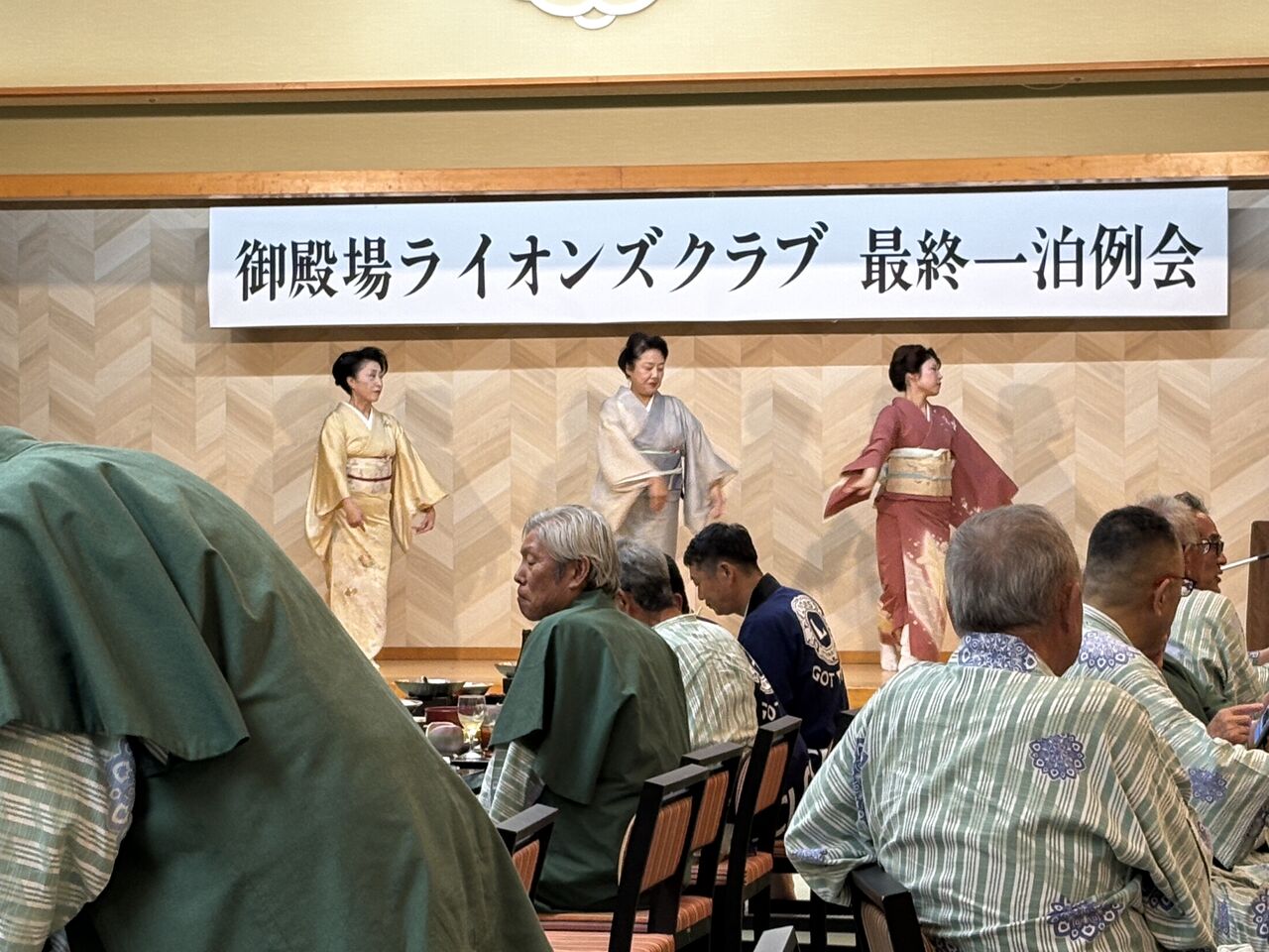 ライオンズクラブ最終一泊例会懇親会、ビール、ワイン、日本酒、ハイボール、芸者さんコンパニオンさん、踊りと三味線、サービスショット!