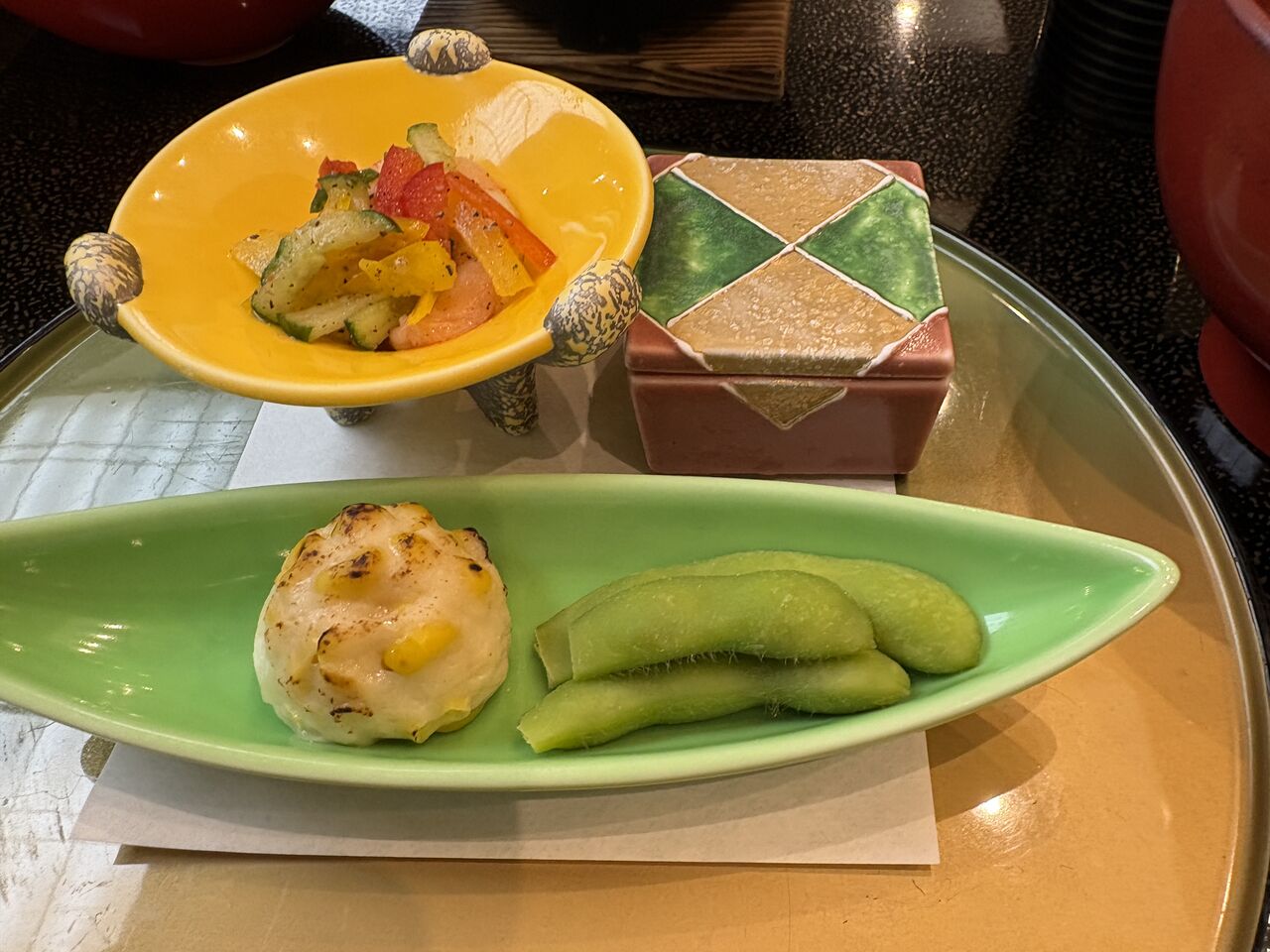 茶碗蒸し。 締めはご飯とみそ汁。滲みる。