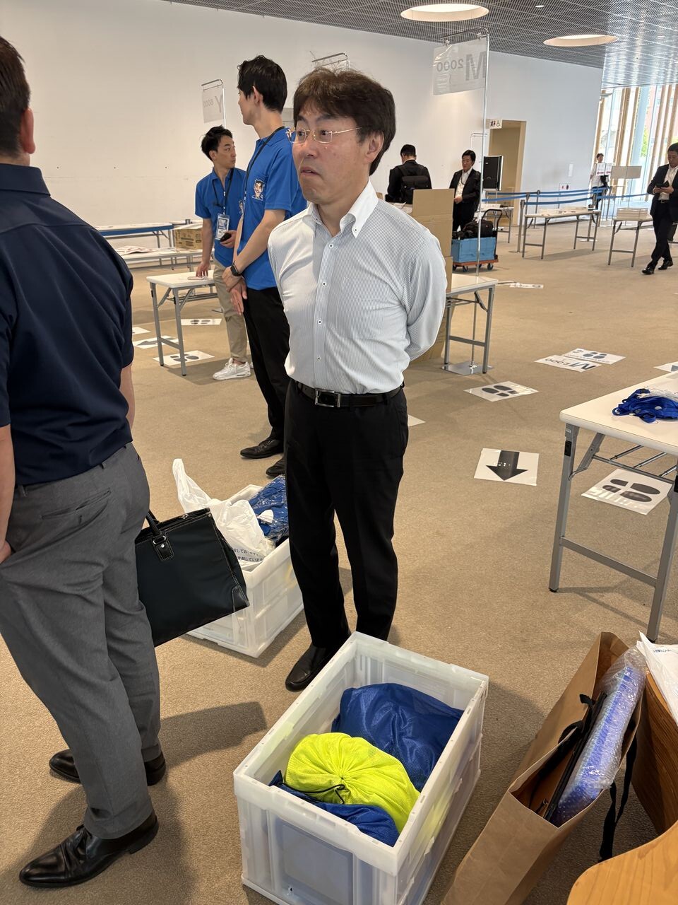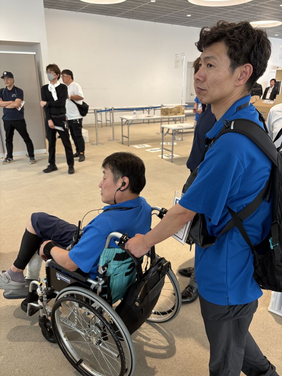 嶋田先生登場。陣頭指揮を執る足を骨折した田山くんと、車椅子を押す塩川くん。