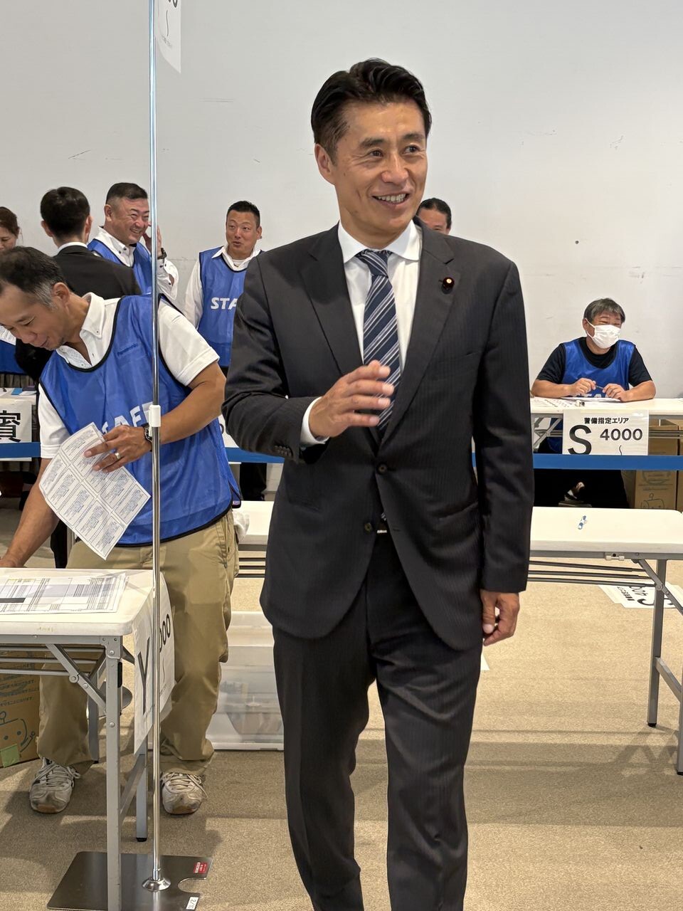 私は御殿場の細野豪志氏の後援会「御殿場世論研究会」の一員として、受付をさせていただき、来場者の胸に上のシールを貼る係でしたが、物凄い人数でしたね。