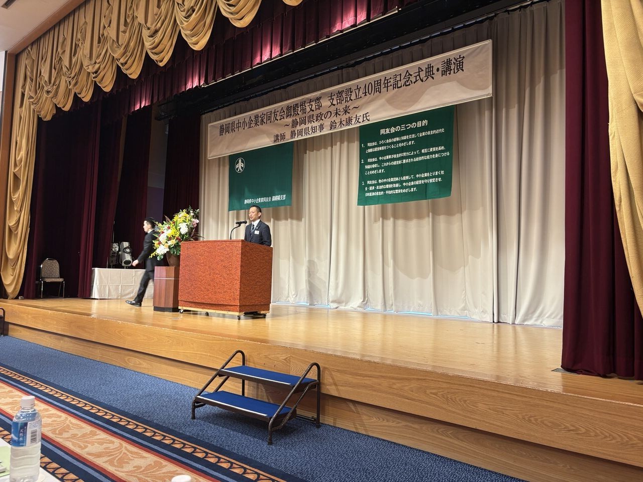 この日は御殿場高原ホテルで静岡県中小企業家同友会御殿場支部設立40周年記念式典・講演でした。