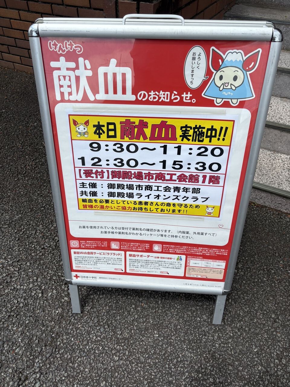 この日は商工会駐車場でライオンズクラブの献血活動でした。
