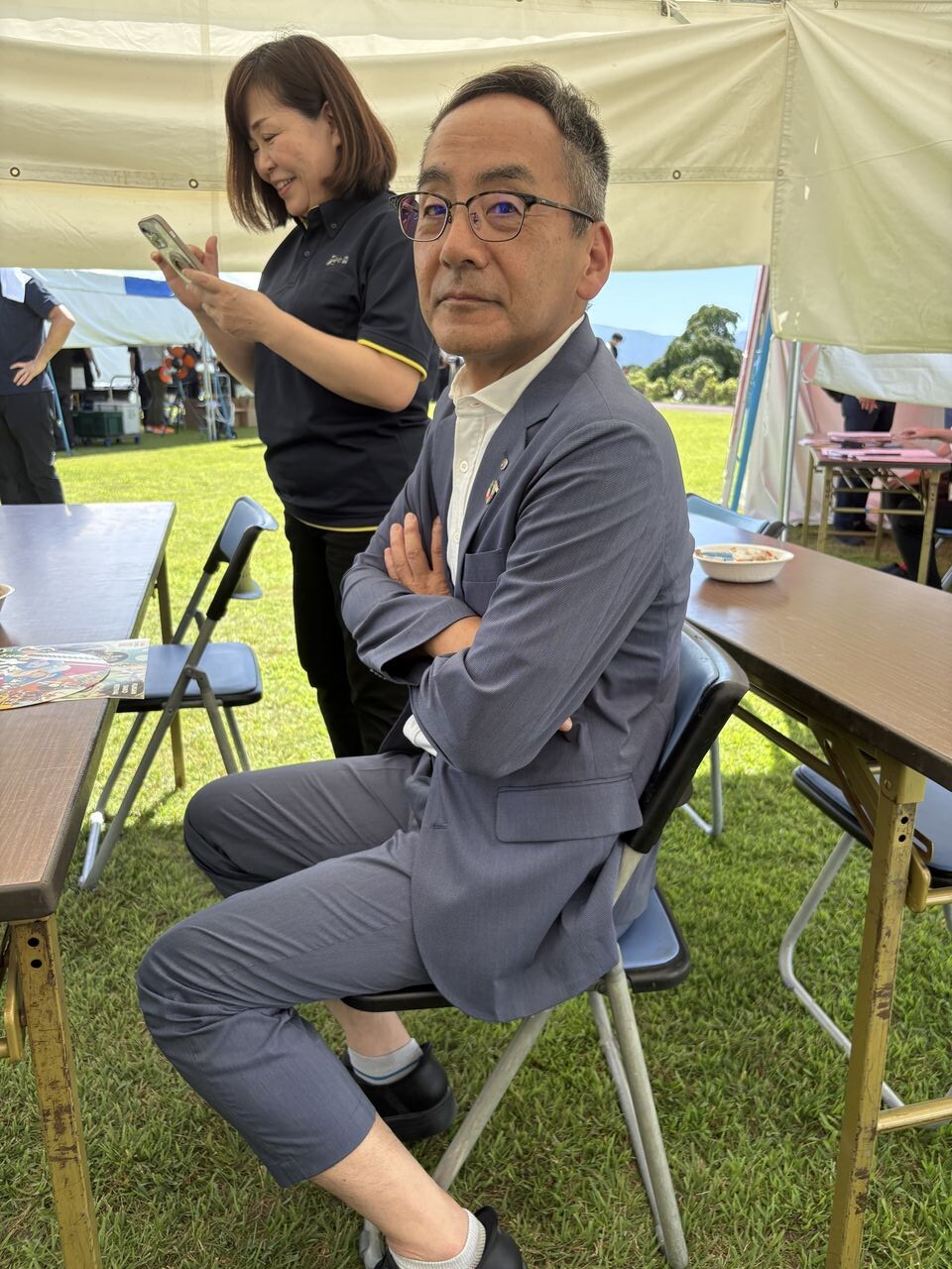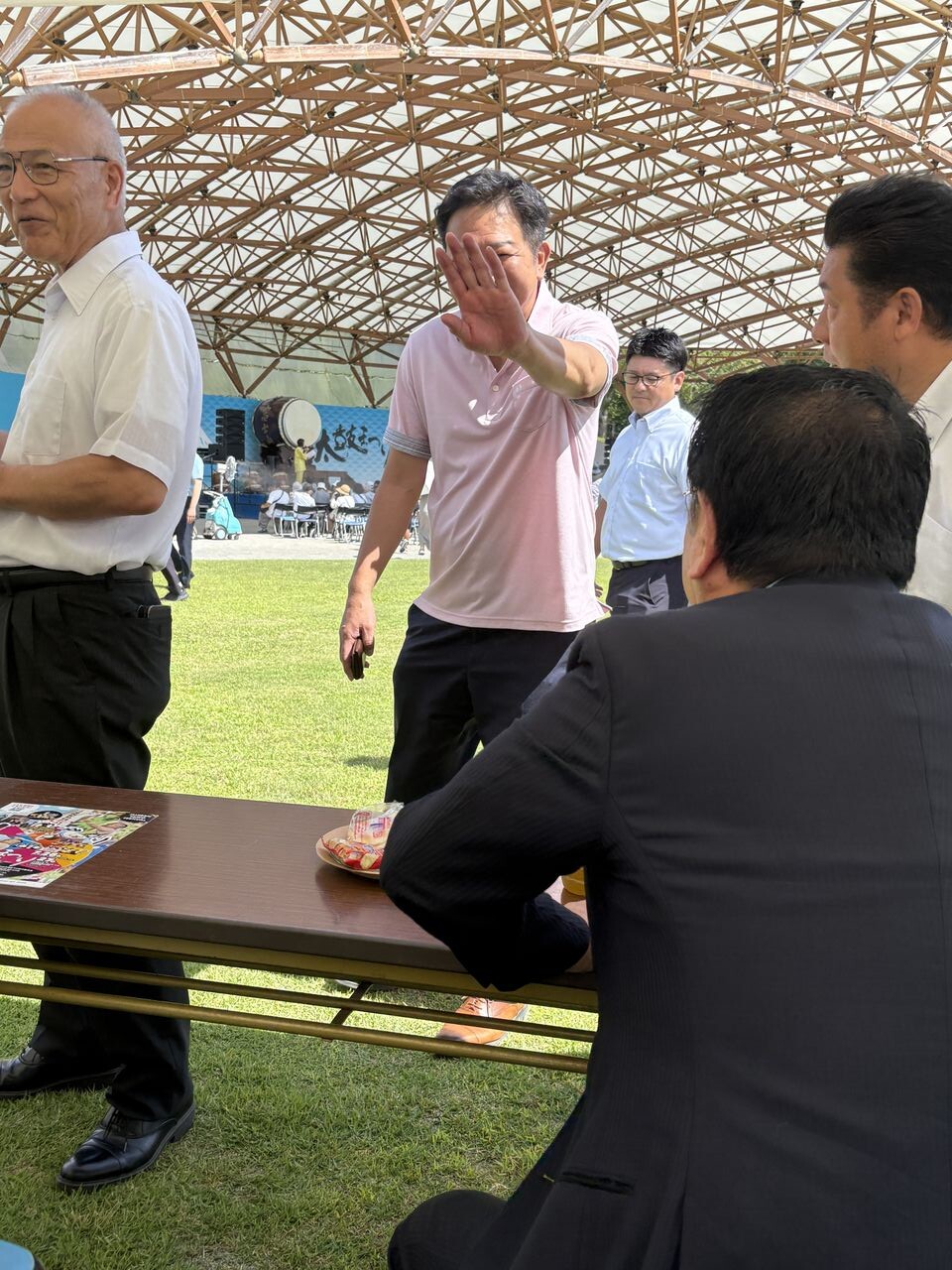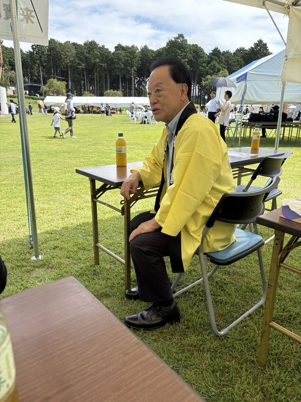 山内観光協会長発見!言わずと知れた富岳太鼓の権威。この祭りの主催者です。