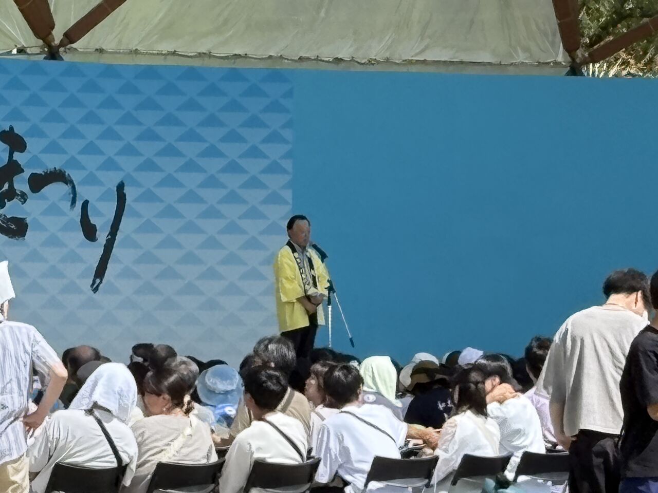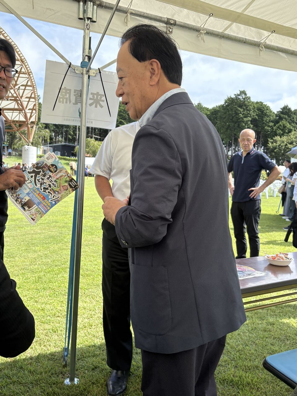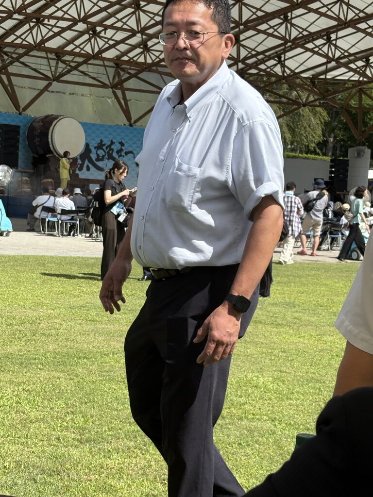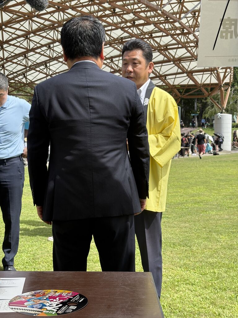 山内観光協会長発見!言わずと知れた富岳太鼓の権威。この祭りの主催者です。