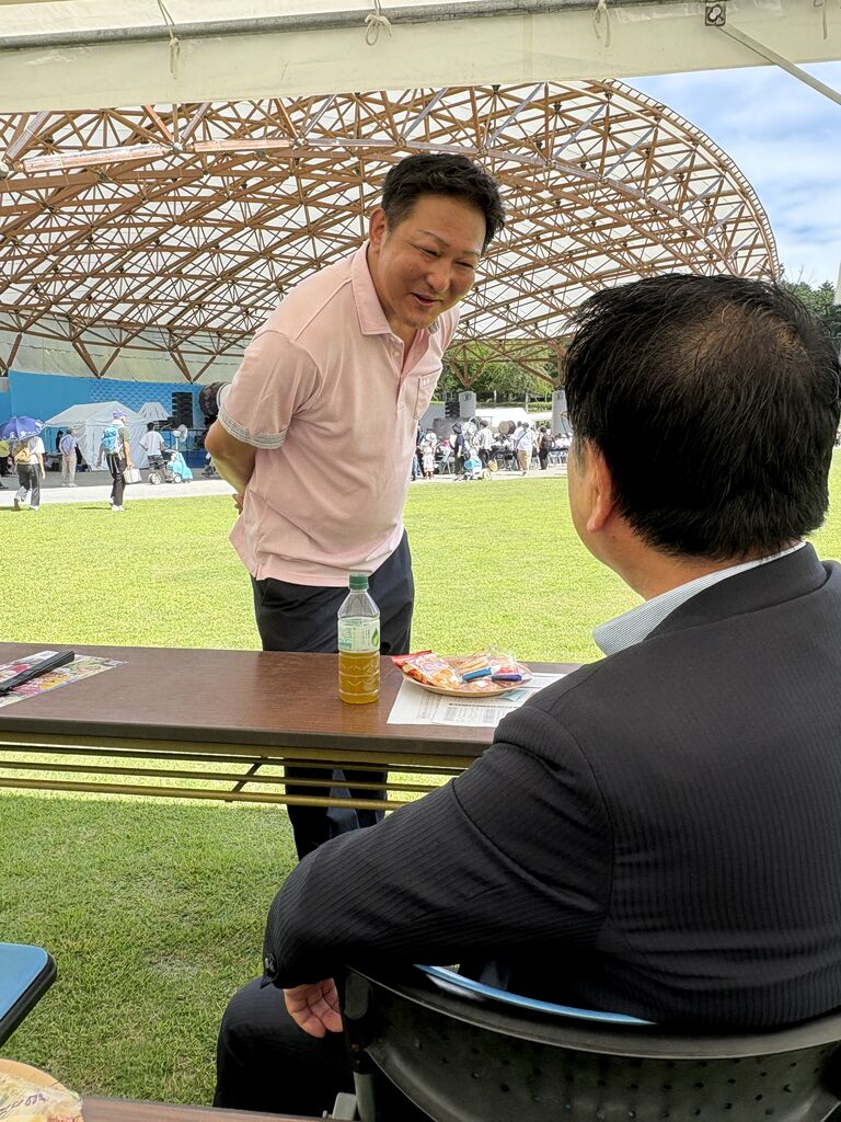 顔を隠す若林洋平参議院議員秘書の勝又くん。勝又正美御殿場市長。