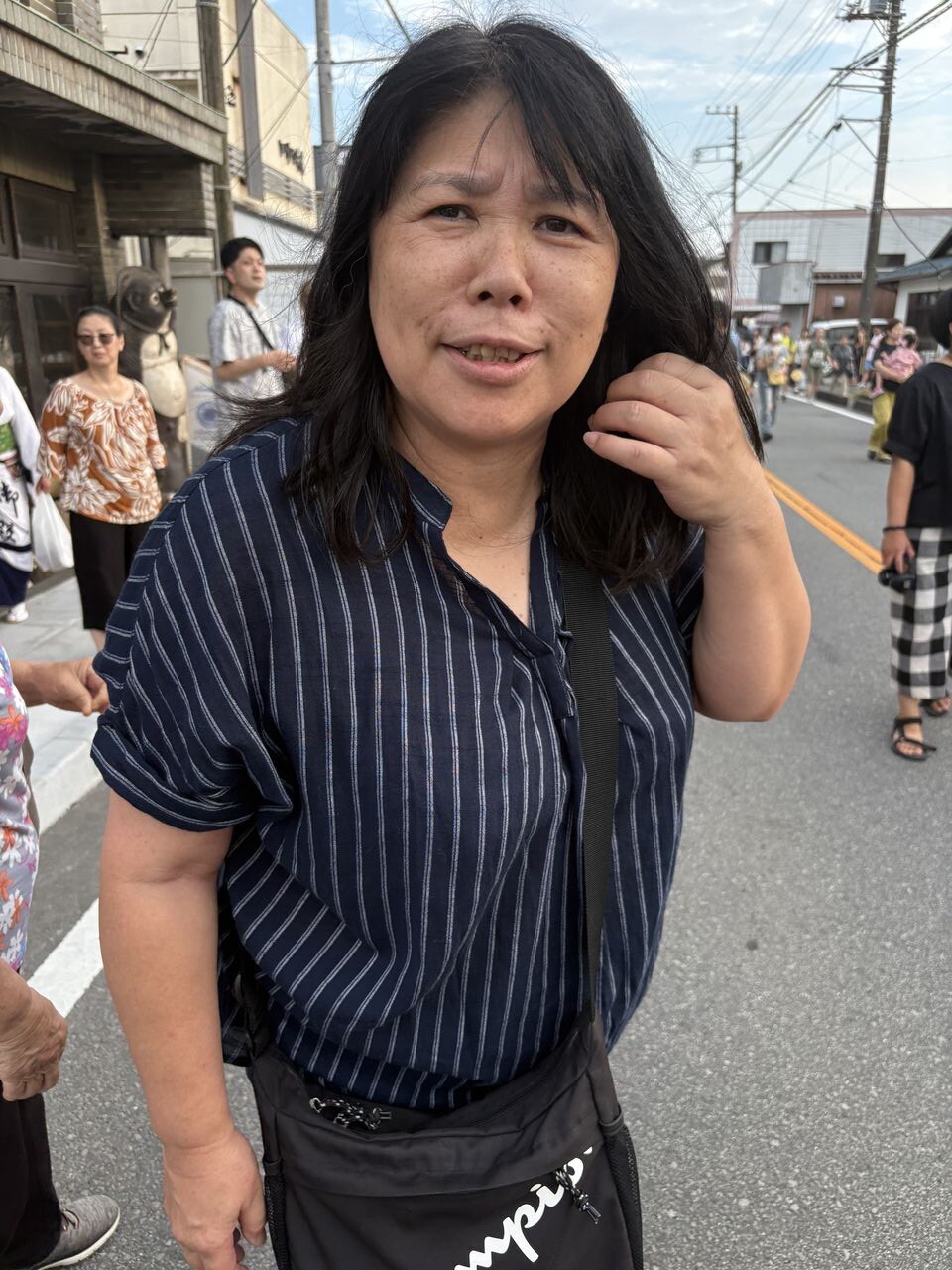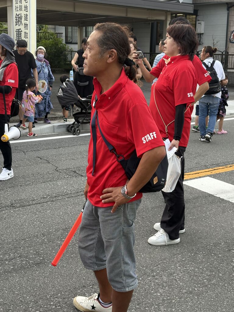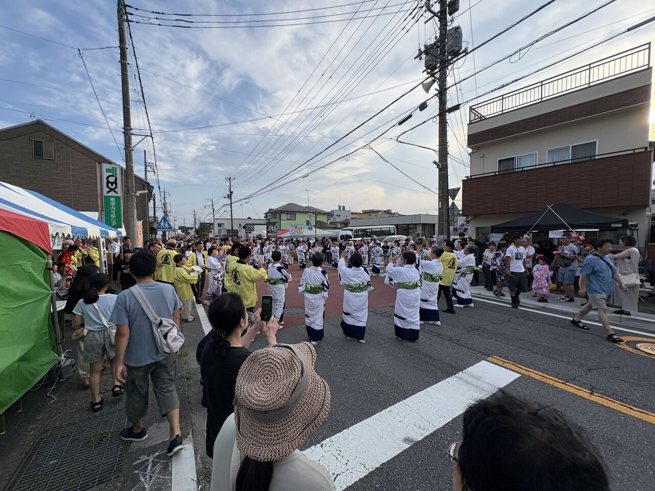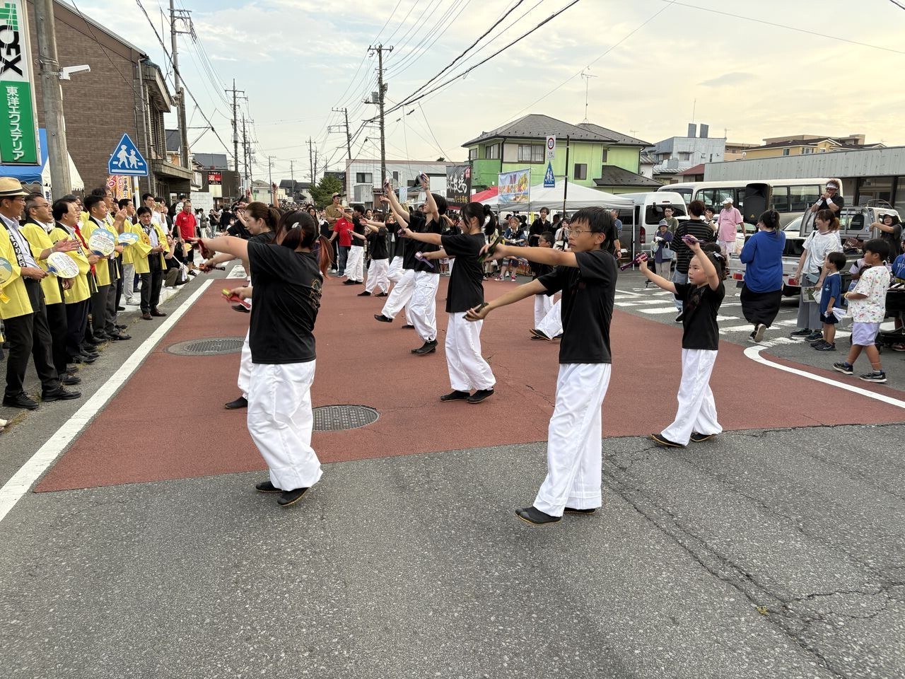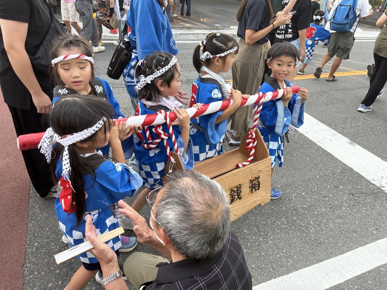 子供神輿の後ろで、お金集めてました。マダム達は民謡踊り。