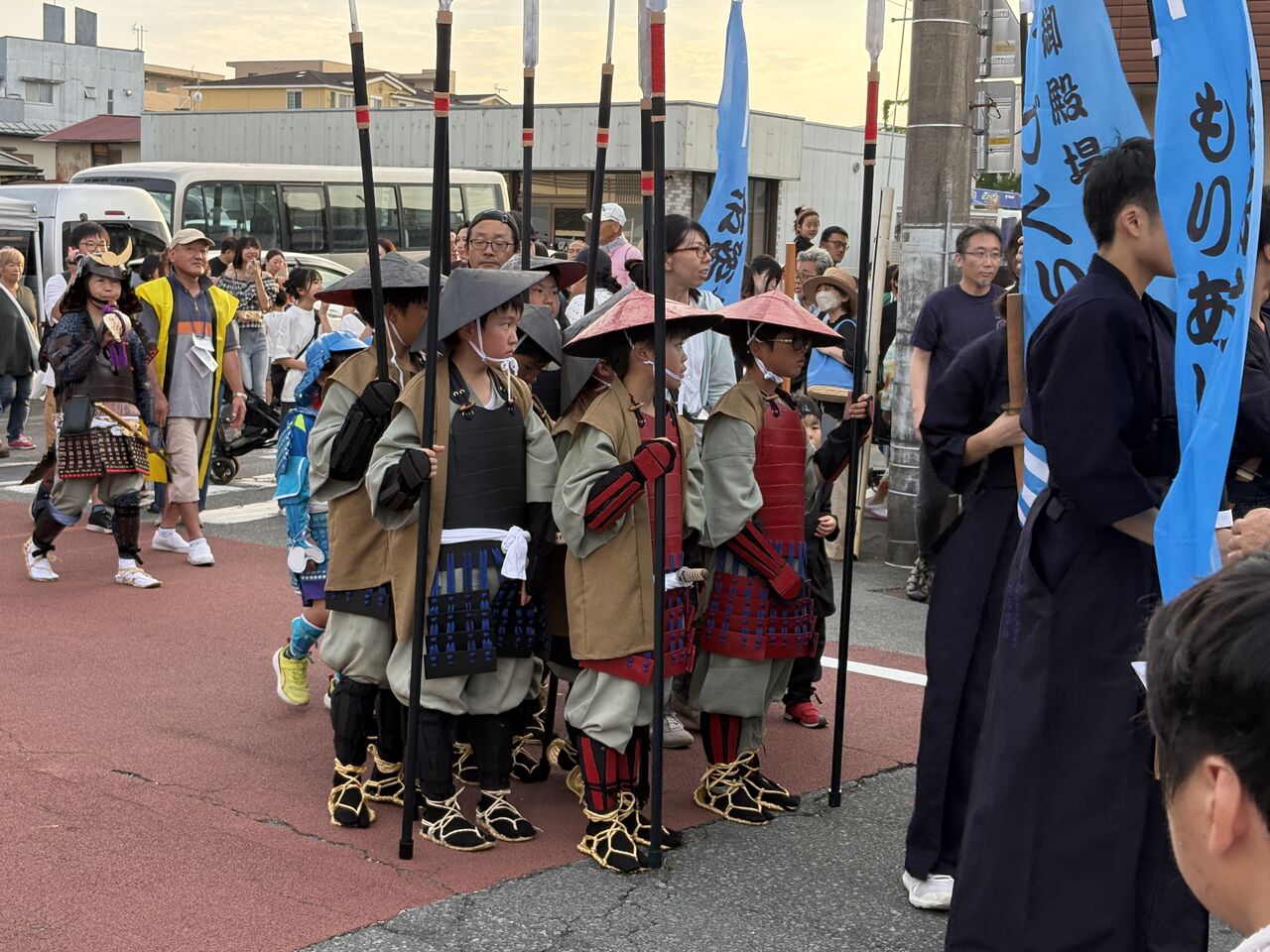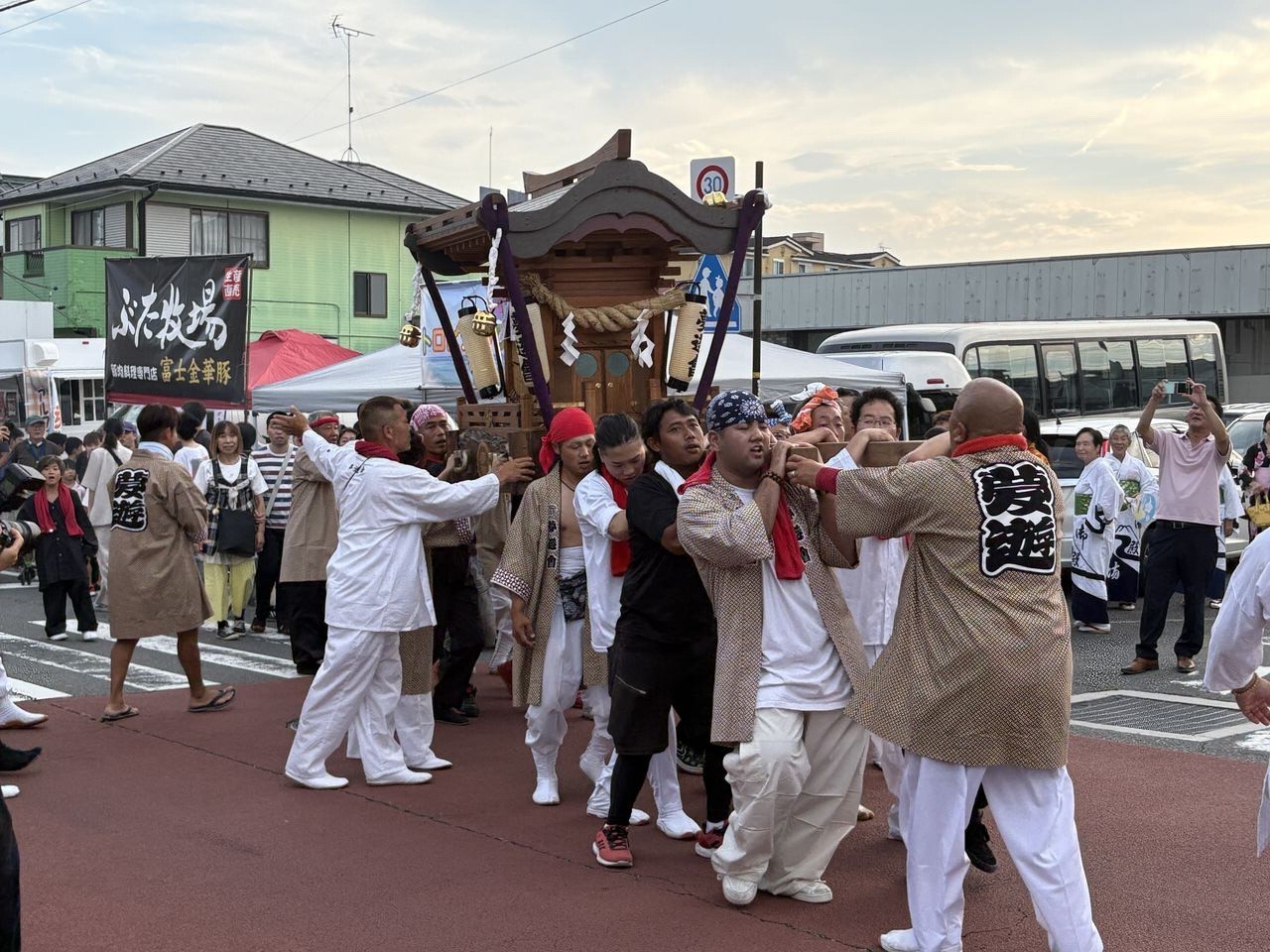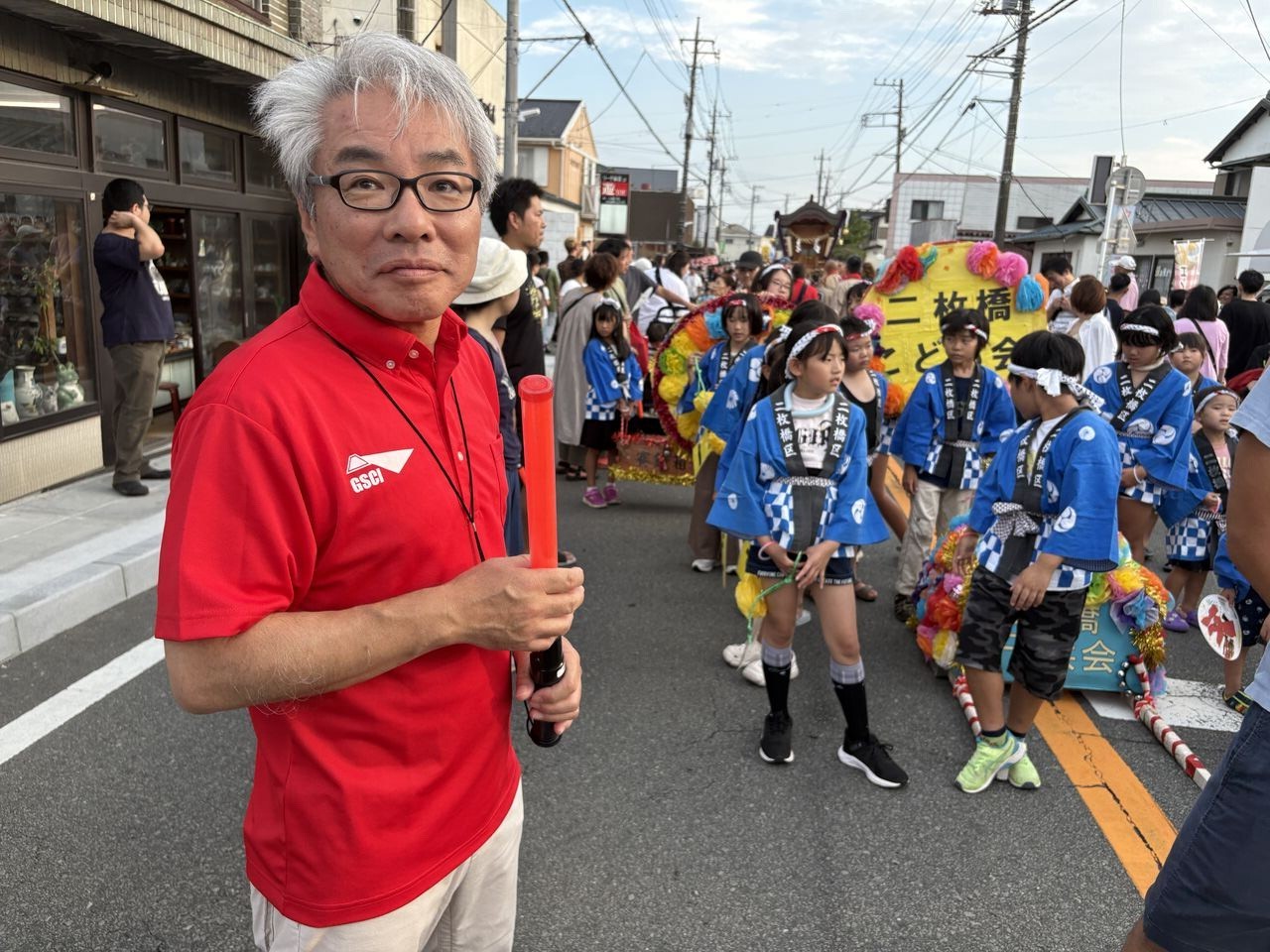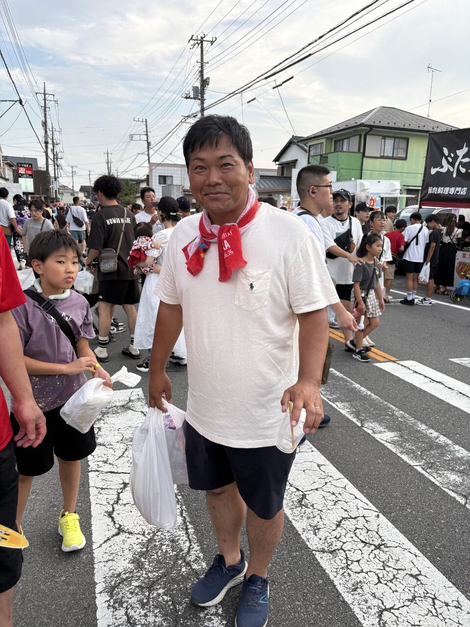 子供神輿の後ろで、お金集めてました。マダム達は民謡踊り。