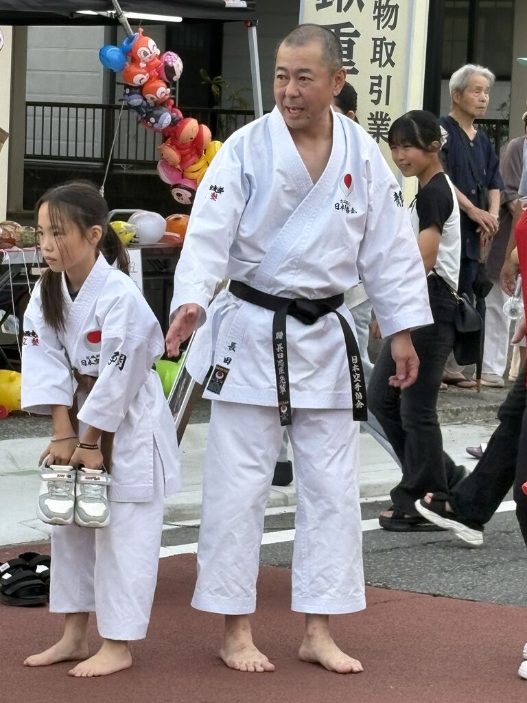 空手の子供たちを率いるのはオリオン食堂の長田くんです。