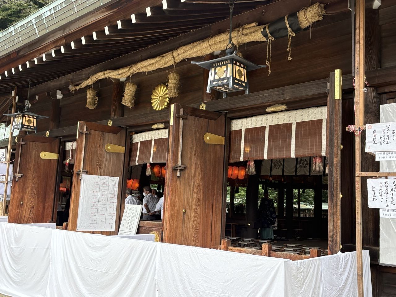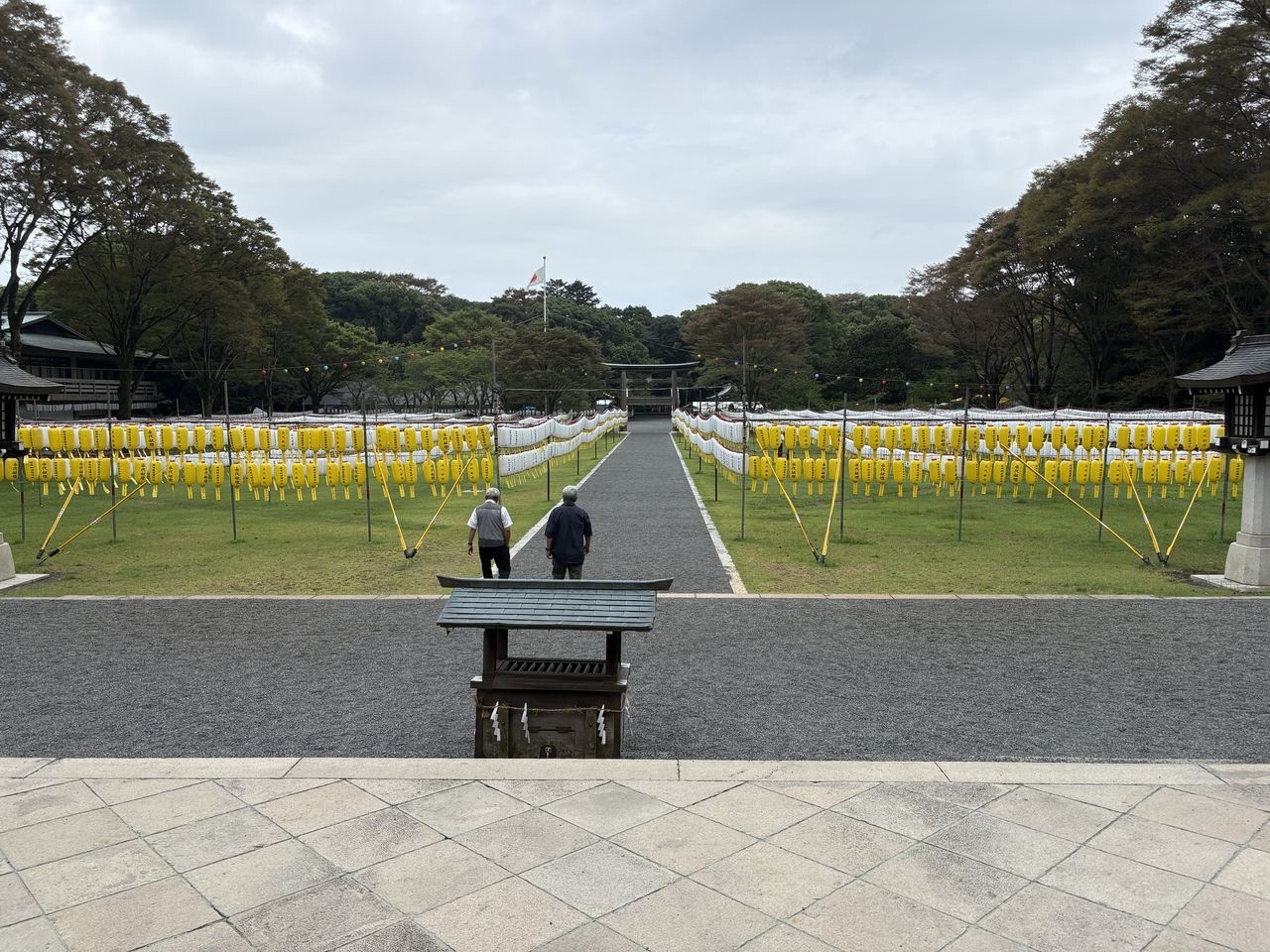 突然の大雨の為、正殿前でなく、記念館前の屋根のある所で、今回は行いました。