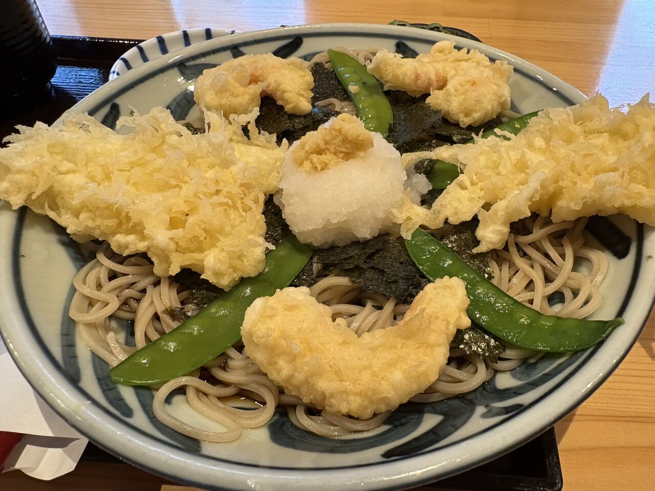 悔しかったから、帰りに「戸隠蕎麦」に寄っって、磯おろしミックス天、いただきました。