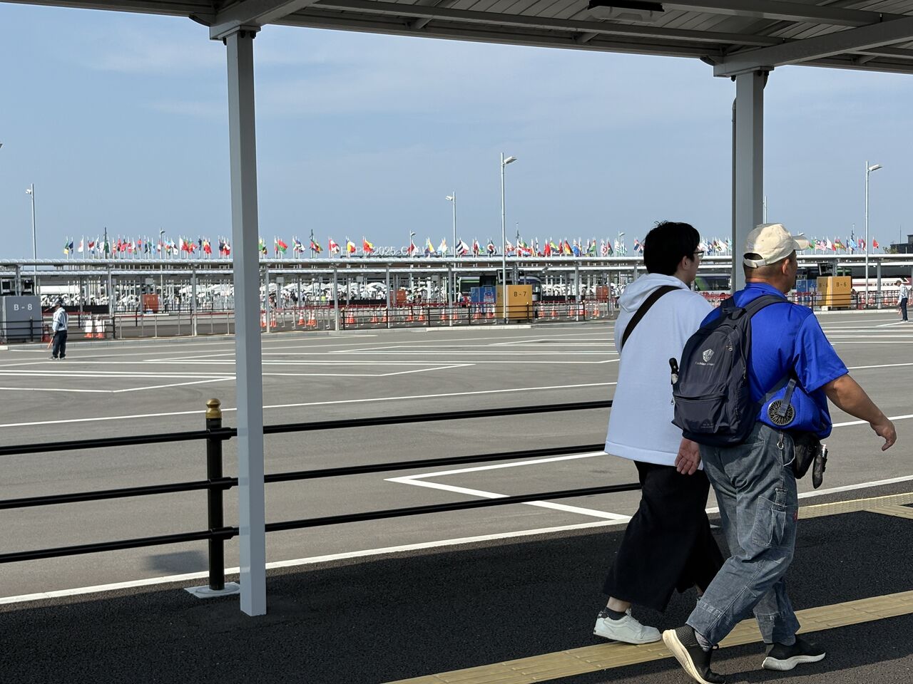 団体バス駐車場から炎天下の中、1㎞以上歩きます。