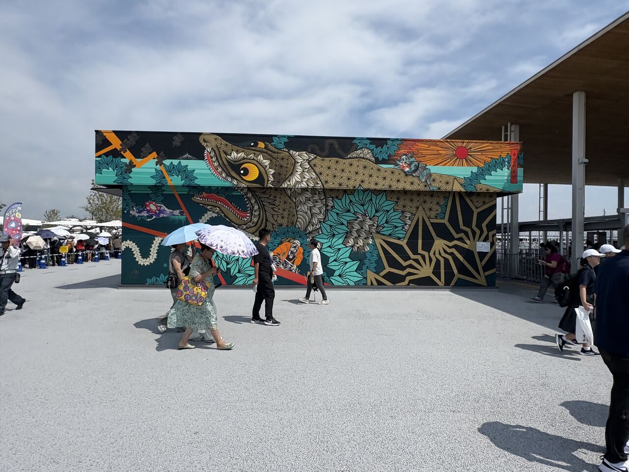 朝一、一番人気のイタリア館の当日入場に並ぼうと行ってみましたが、既に2時間待ちの行列でした。諦めて、隣のベルギー館のお土産物屋を見学して出てきたら、もう5時間待ちになってました。