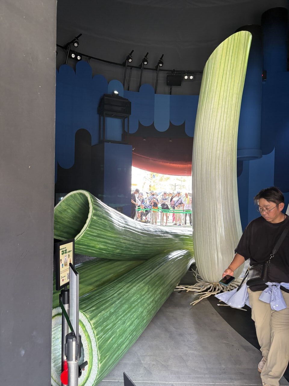 大きなネギと吉本パビリオンの外観。