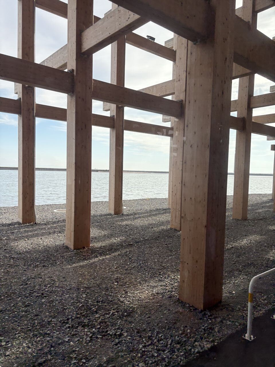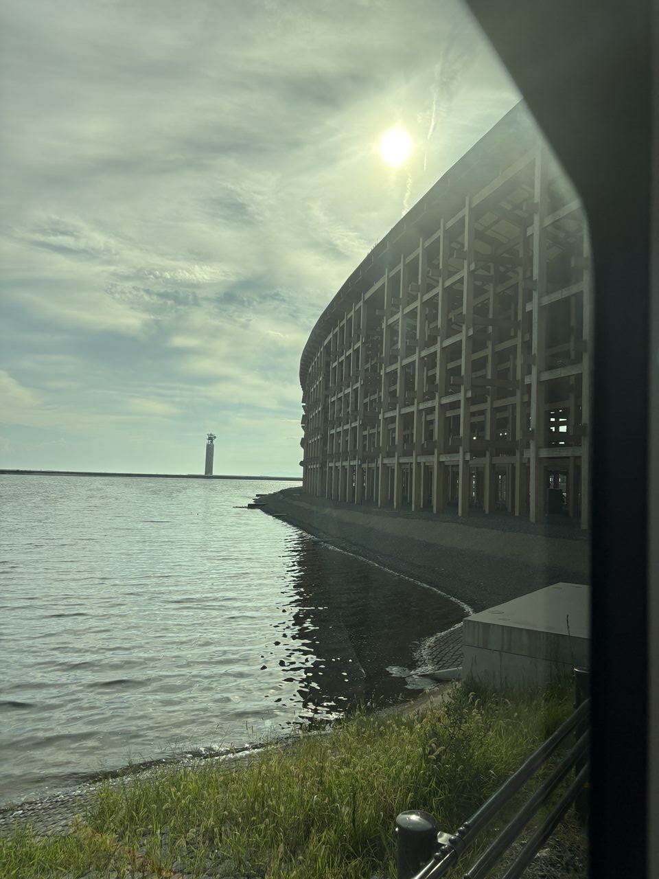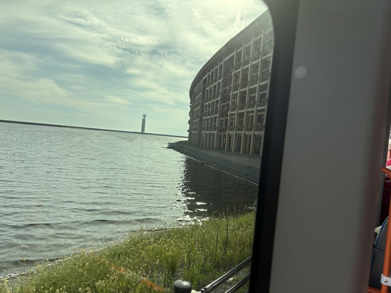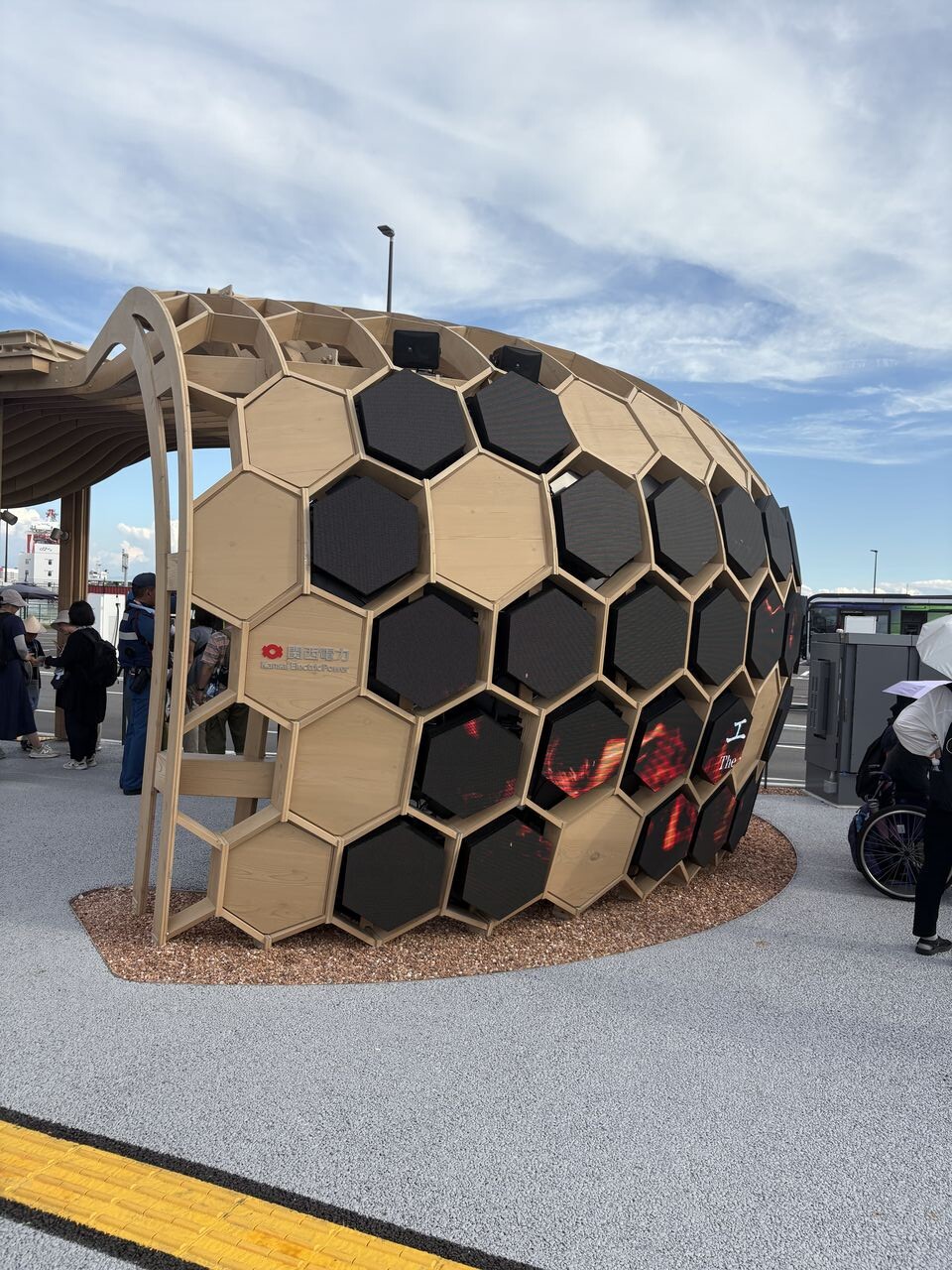 大屋根リングを巡回している電気自動車バスに乗ると、こんな景色も拝めます。