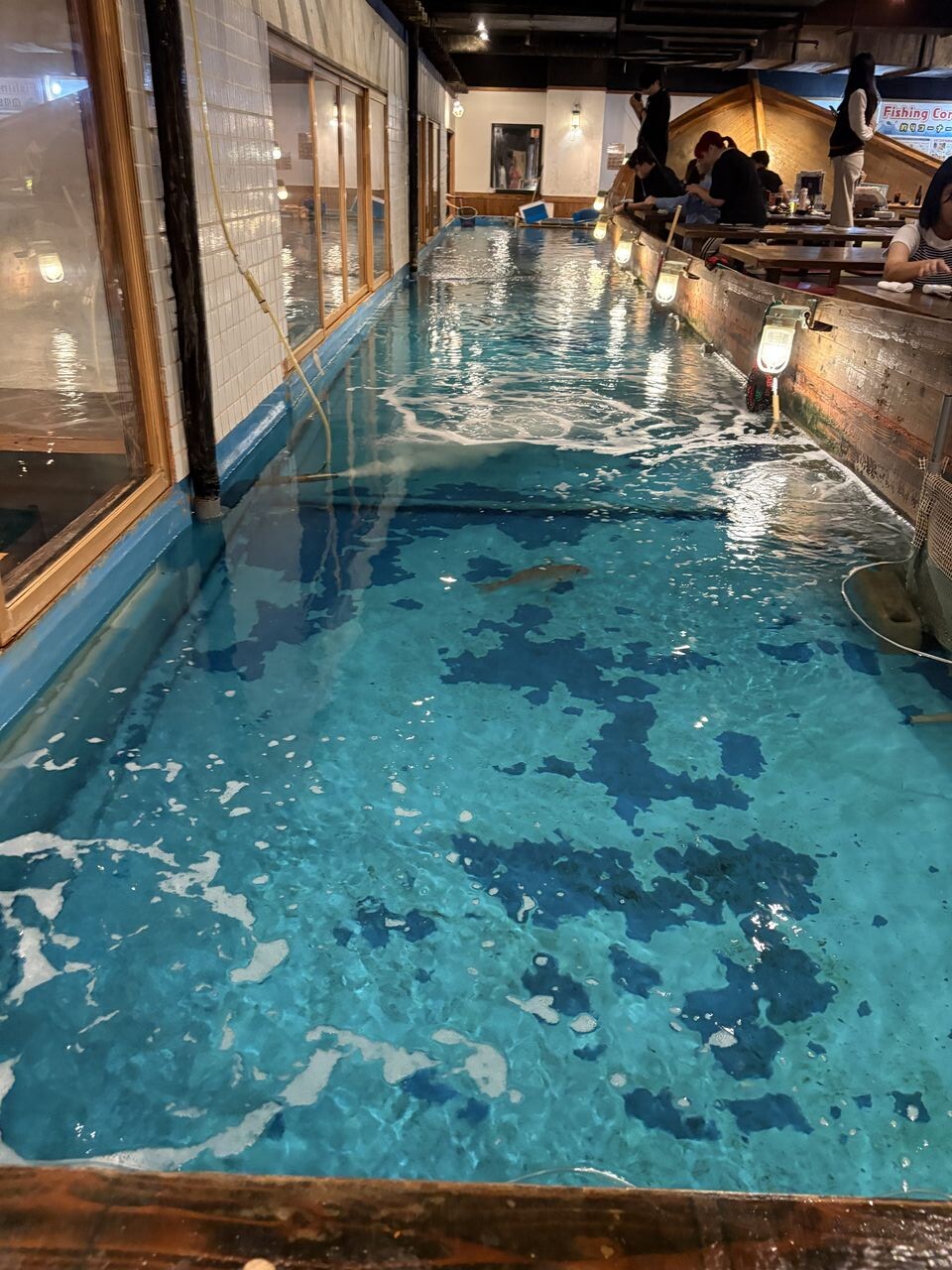 熱波の万博会場からホテルに帰り、ホテル地下の水槽居酒屋で夕食です。