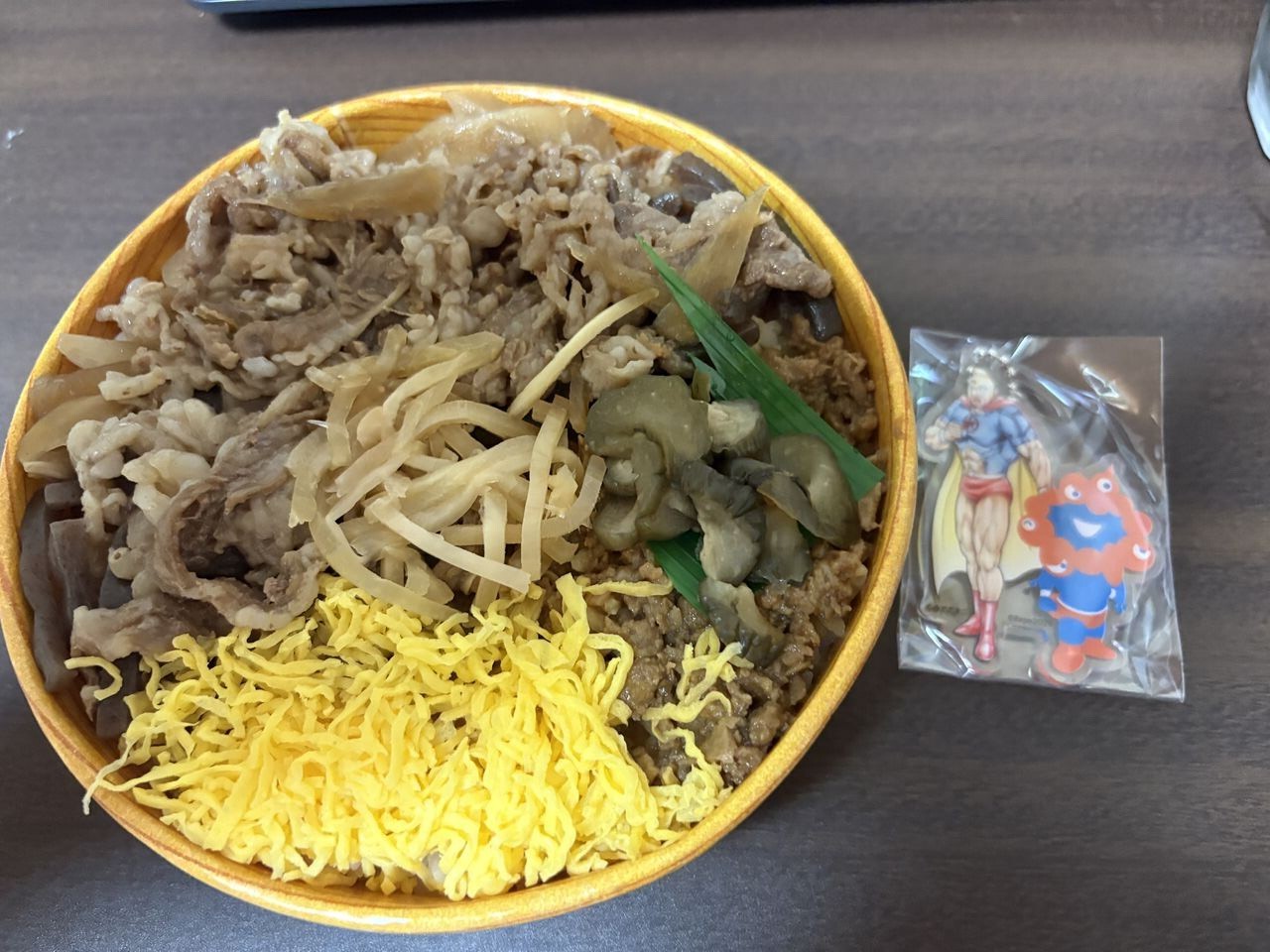 万博のミャクミャクとキン肉マンがコラボした、超人タッグ弁当を買って帰り、家で食しました。