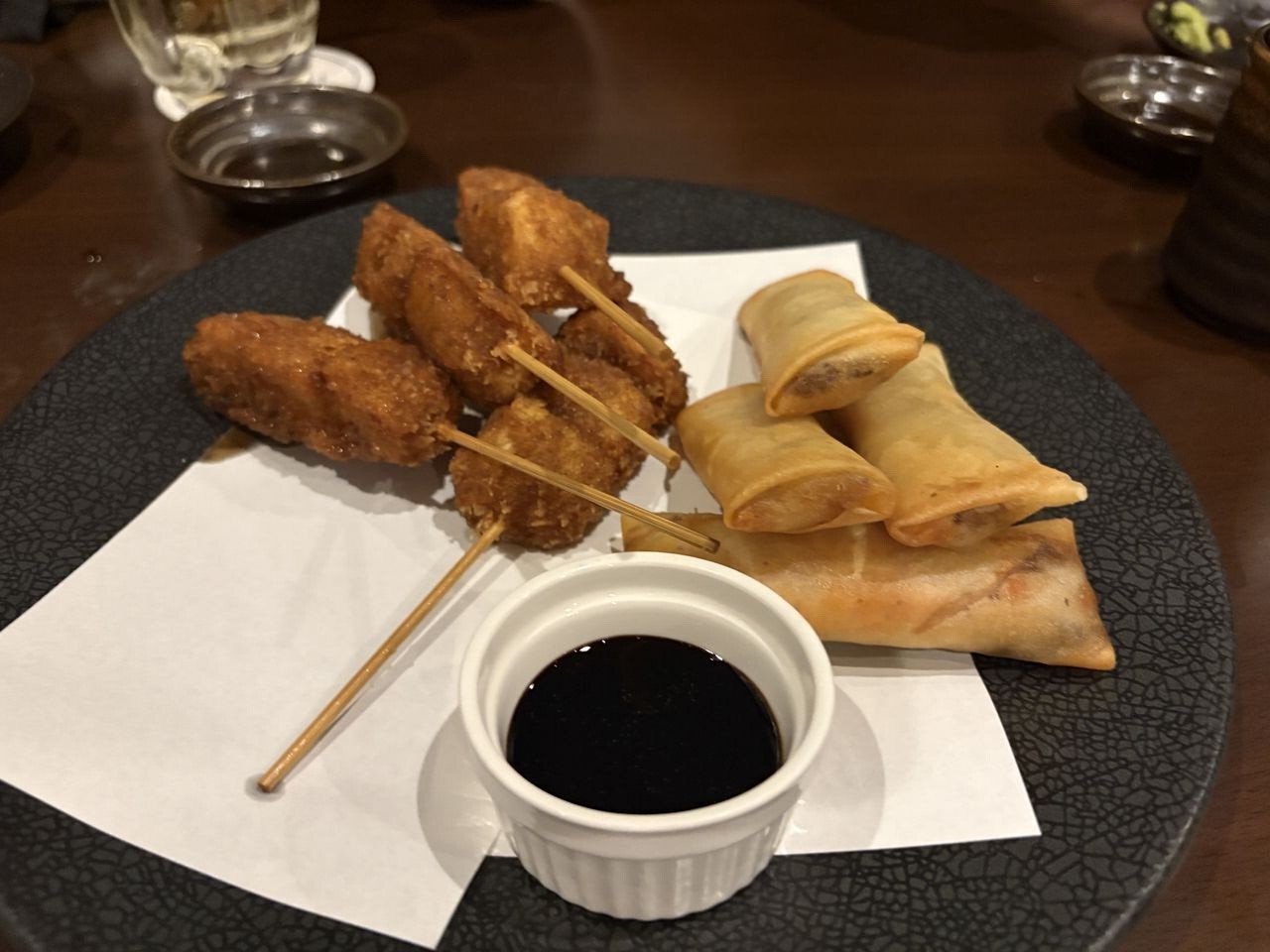 懇親会に突入。ここの名物、鮪の断面切り刺身。