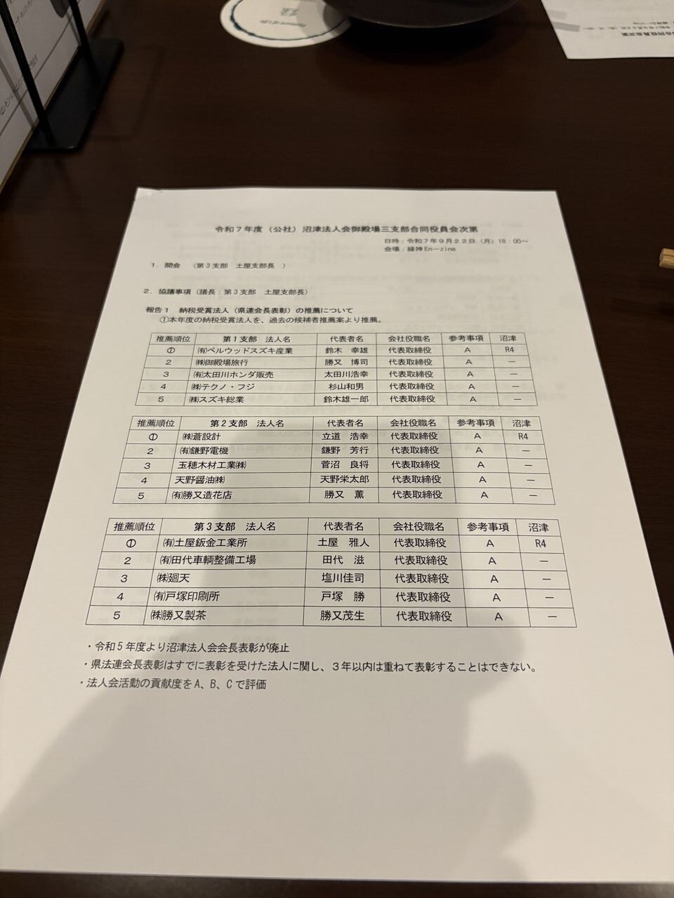 この日は御殿場駅前バス通り(IN側)の「縁(えにし)」さんで、沼津法人会御殿場3支部合同役員会でした。