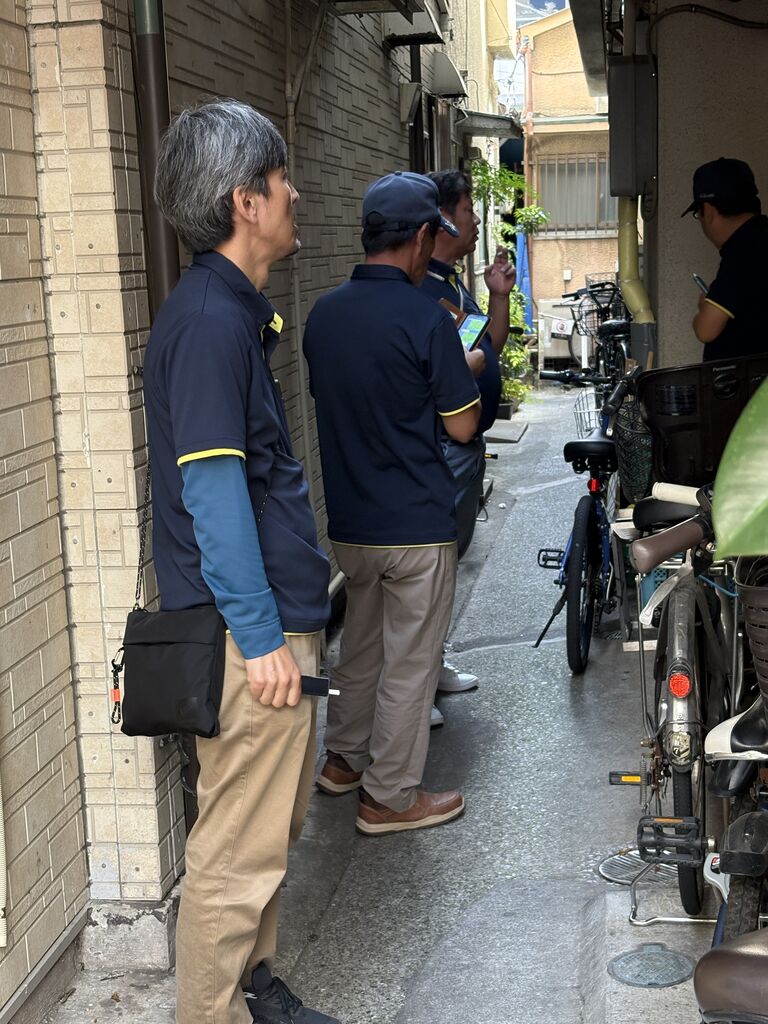 休憩後、パレードの集合・出発場所へ向かいます。煙草を吸う人々。