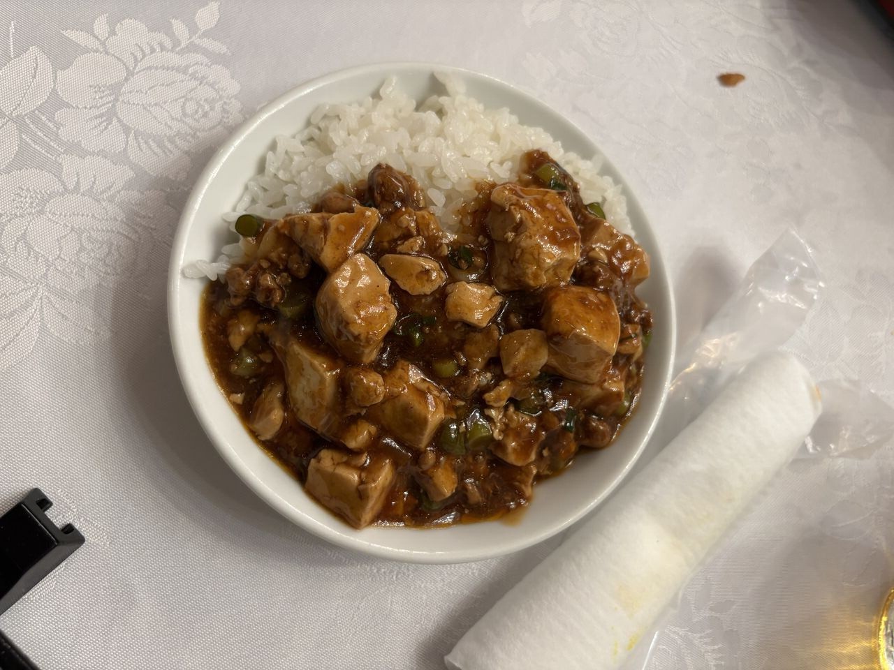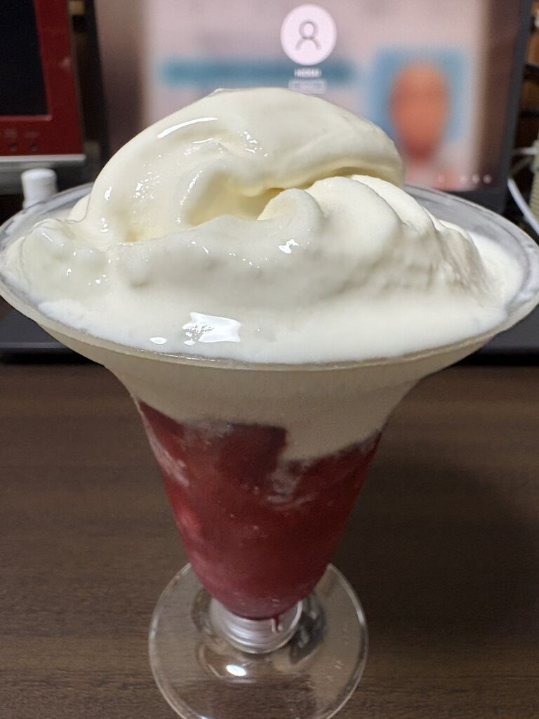 名鉄菜館で「御殿場市企業懇談会」、勝又正美御殿場市長、杏仁豆腐、春巻き、麻婆豆腐、角煮、エビチリ、新作アイス、ミニストップの果実氷いちご、サービスショット!