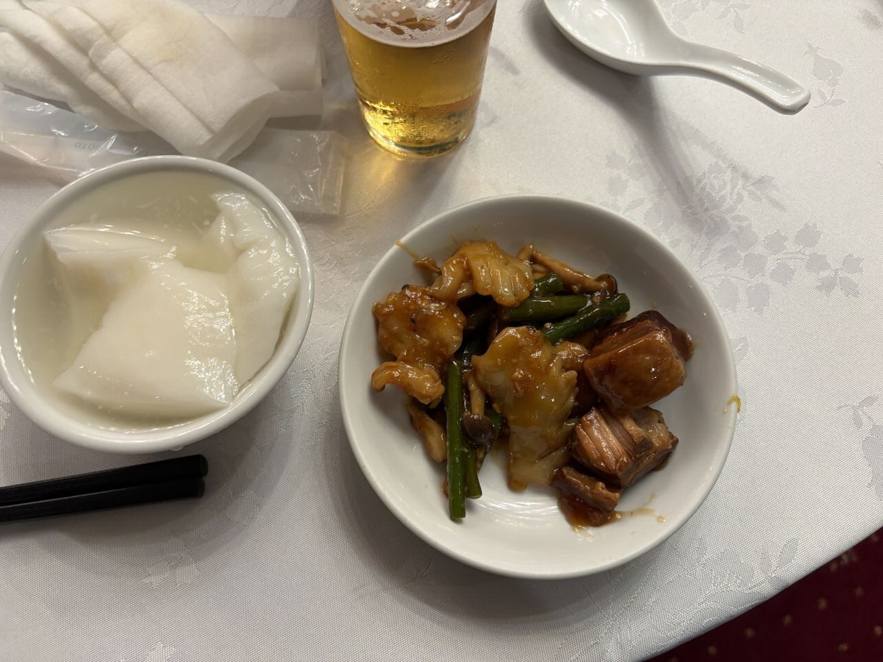 懇親会開始です。杏仁豆腐、春巻き、大漁です!