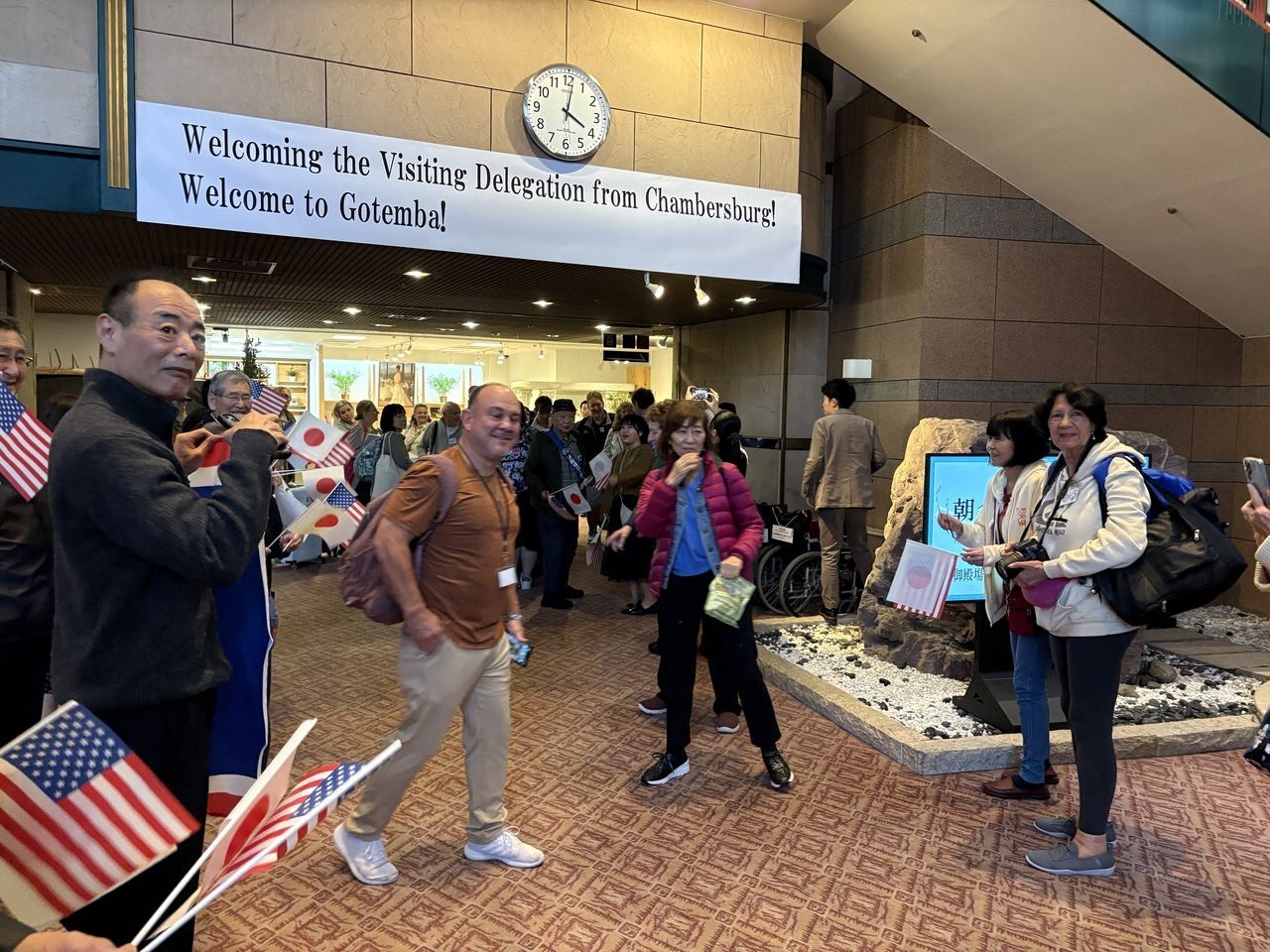 アメリカのチェンバーズバーグ市の姉妹都市締結65周年記念の訪問団のお出迎えです。