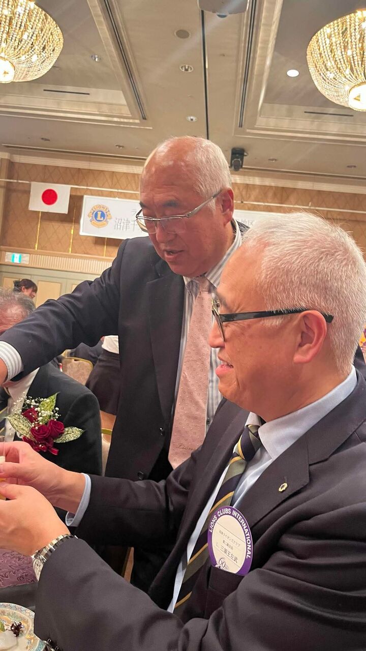 沼津千本ライオンズクラブの60周年記念式典の写真いただきました。三須さんにお酒注いでる僕です。