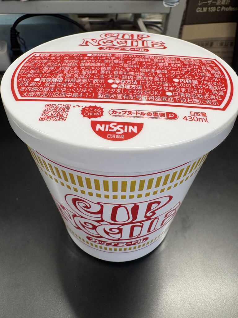 日清のカップ麺を買っていただいた、カップヌードル型保温コップ(蓋付)です。