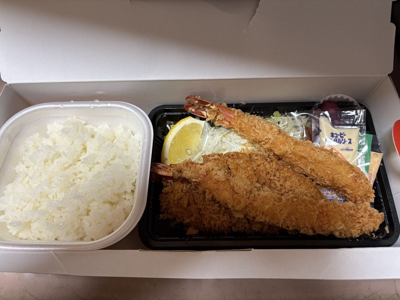 お昼は、かつ榮のヒレカツ&海老フライ弁当。