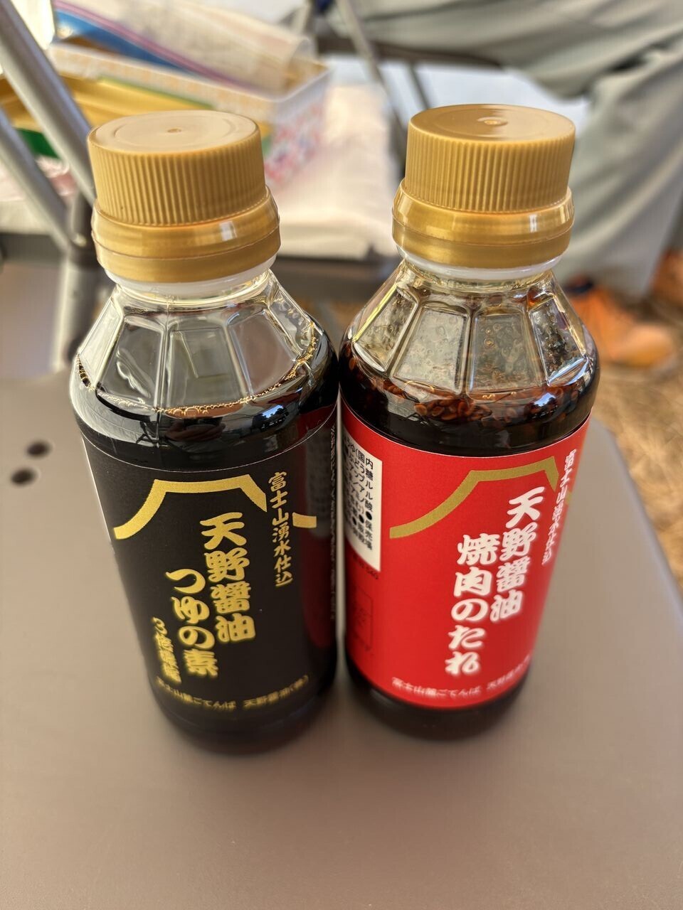 市役所の上道くん。天野醤油の新製品、つゆの素、焼肉のたれ、いただきました。