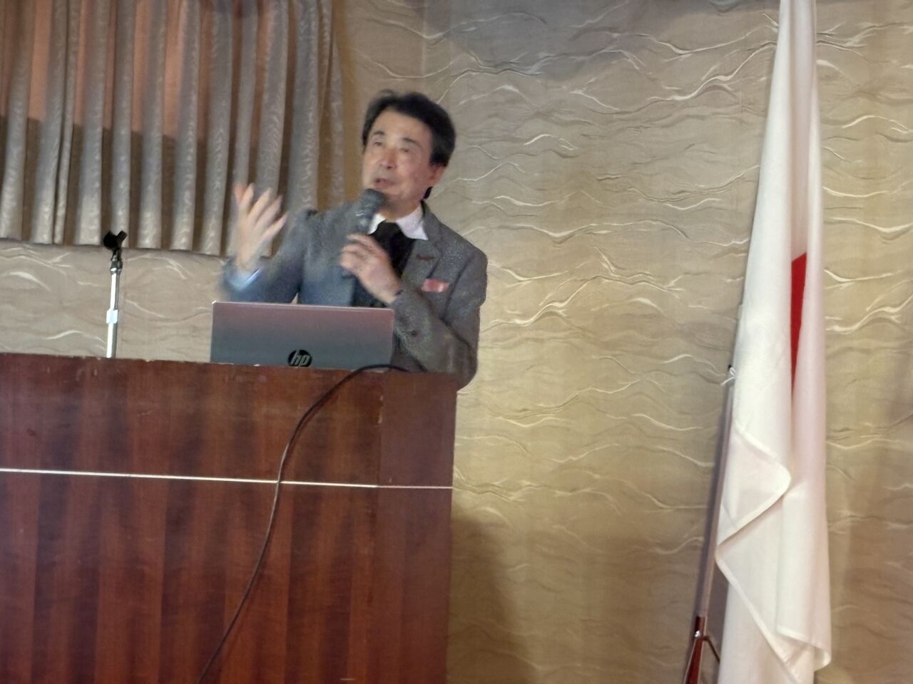 この日はゲストスピーチとして、富士モータースポーツミュージアム館長の布垣氏にスピーチしていただきました。